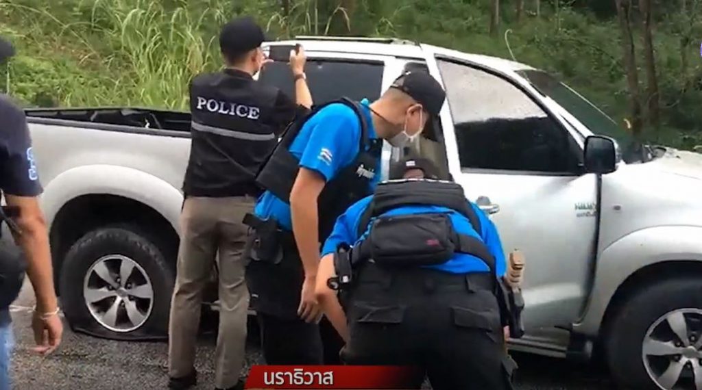 นราธิวาส 16 พ.ย. – คนร้ายใช้ปืนสงครามดักซุ่มยิงเจ้าหน้าที่ชุดสืบสวน ศชต. ขณะนั่งรถยนต์กระบะไปราชการพื้นที่ จ.นราธิวาส โชคดีไม่มีผู้บาดเจ็บ และสามารถจับกุมคนร้ายได้ 1 คน พร้อมรถจักรยานยนต์ อาวุธปืนสงคราม 4 กระบอก