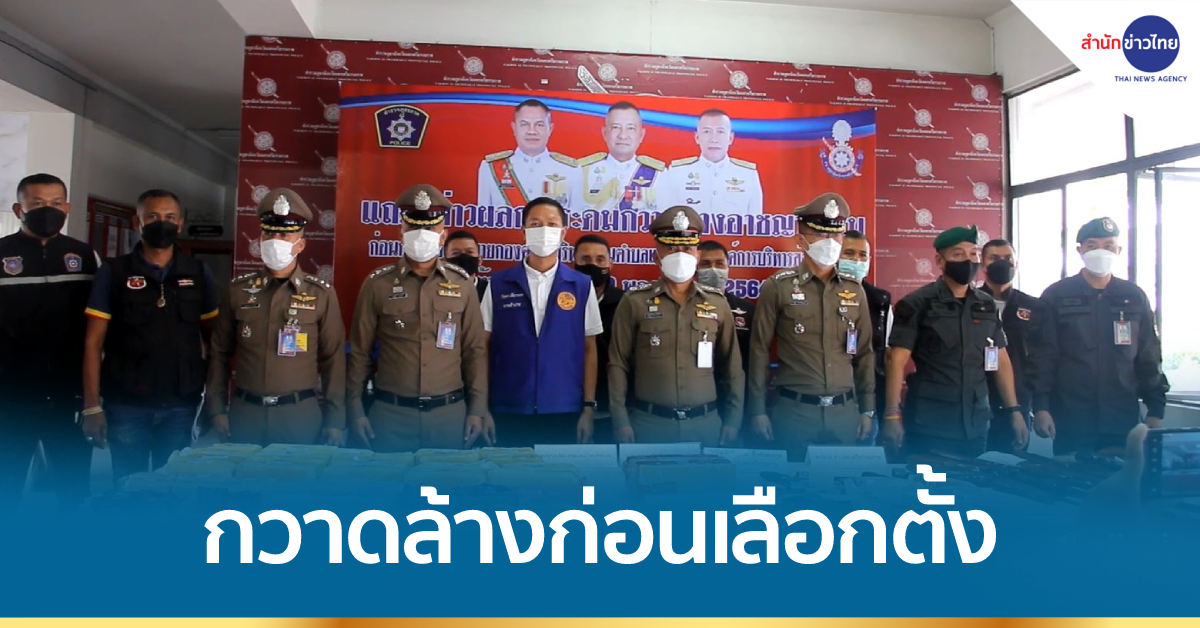 นครศรีธรรมราช 21 พ.ย.-ตำรวจเมืองนครศรีธรรมราช ระดมกำลังกวาดล้างอาชญากรรม และยาเสพติด ครั้งใหญ่ ก่อนเลือกตั้ง อบต. จับผู้ต้องหา 238 คน ยึดยาบ้า ไอซ์ และอาวุธปืน จำนวนมาก