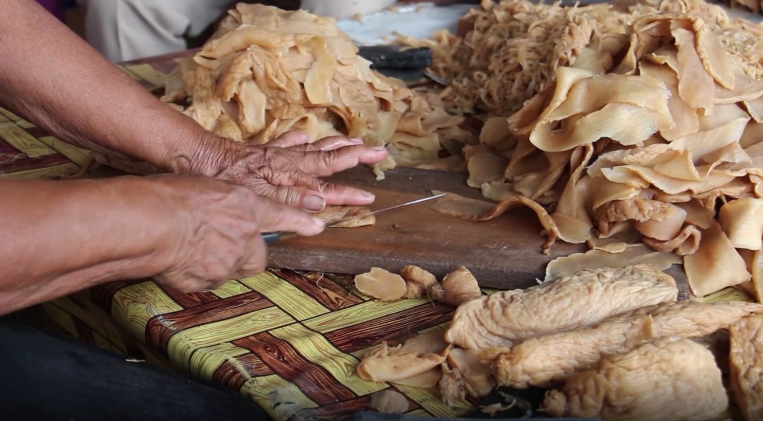 คุณยายสมพร เล่าว่า สมัยก่อนรับจ้างกิโลกรัมละ 50 สตางค์ มาตอนนี้ได้กิโลกรัมละ 3 บาท วันหนึ่งได้ประมาณ 50 กก. คนอื่นก็ยังยึดอาชีพนี้อยู่ แต่เหลือที่อายุมากที่สุดก็คือตัวเอง โดยเถ้าแก่จะเอาไชโป๊มาส่งที่บ้านและมารับเอาไปเข้ากระบวนการปรุงและบรรจุใส่ถุงจำหน่าย