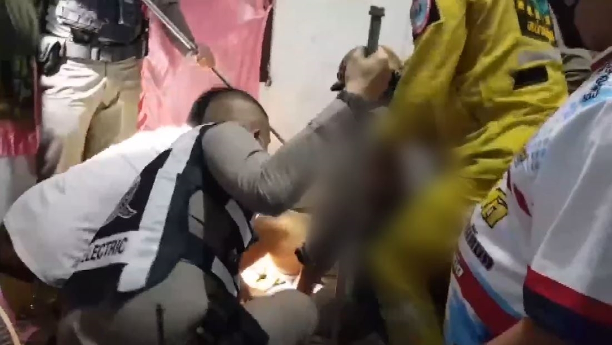 เจ้าหน้าที่ตำรวจได้เข้าไปภายในบ้าน พบกับลูกชายอายุ 32 ปี ที่ยังอยู่ในอาการเอะอะโวยวาย พร้อมถามเจ้าหน้าที่ว่า เข้ามาทำไม จะมาจับข้อหาอะไร ก่อนที่จะไล่ตำรวจให้ออกไปจากบ้าน แล้วปิดประตูเข้าไปอยู่ภายในห้องนอน ตำรวจพยายามเกลี้ยกล่อมให้ออกมาพูดคุยกัน แต่ทางลูกชายไม่ยอมออกมา แถมยังตะโกนด่าเป็นระยะ