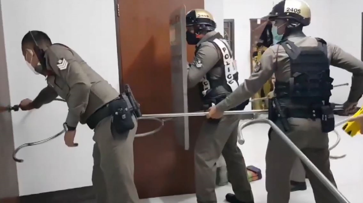ตำรวจและกู้ภัยที่มาระงับเหตุ จึงปรึกษากันว่า ควรจะต้องบุกเข้าไปภายในห้อง เพราะหากปล่อยไว้ ลูกชายอาจจะทำร้ายแม่ เจ้าหน้าที่จึงได้ขอกุญแจสำรองจากผู้เป็นแม่ ไขประตูห้องเข้าไป เพื่อชาร์จตัวลูกชาย โดยขณะที่ตำรวจใช้กำลังควบคุมตัวอยู่นั้น ลูกชายคลั่งก็ยังคงขัดขืนและโวยวายว่าตำรวจมาจับข้อหาอะไร พร้อมท้าให้ตรวจปัสสาวะ