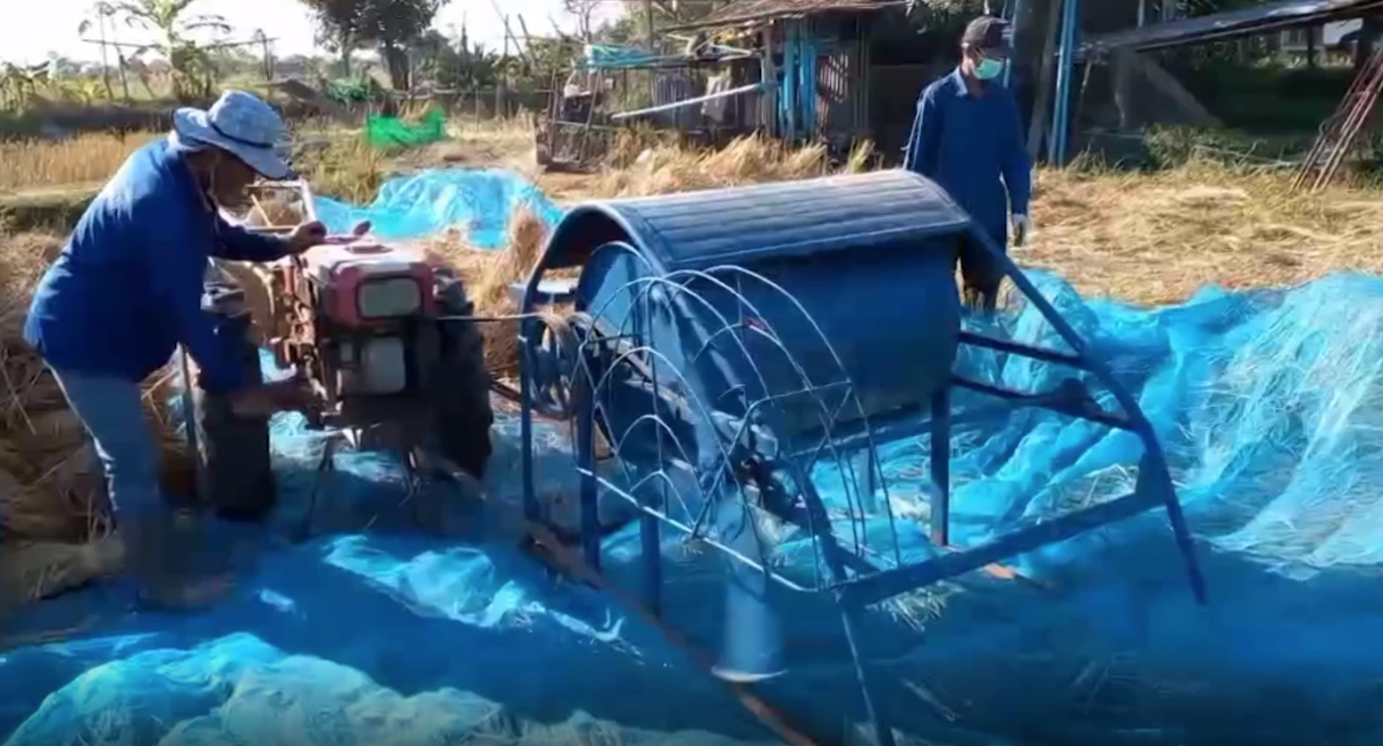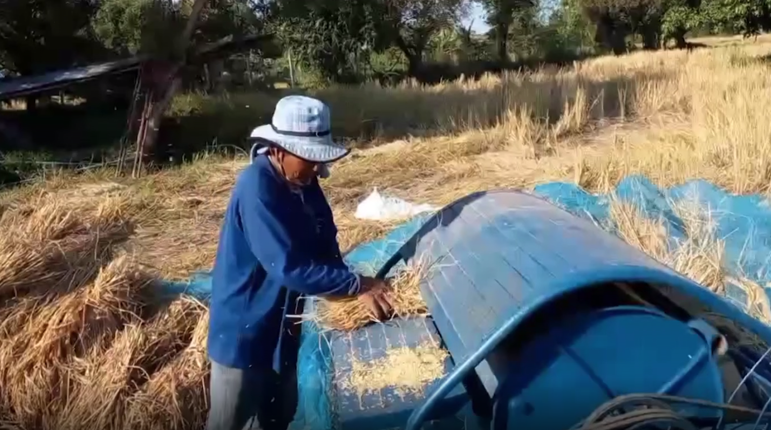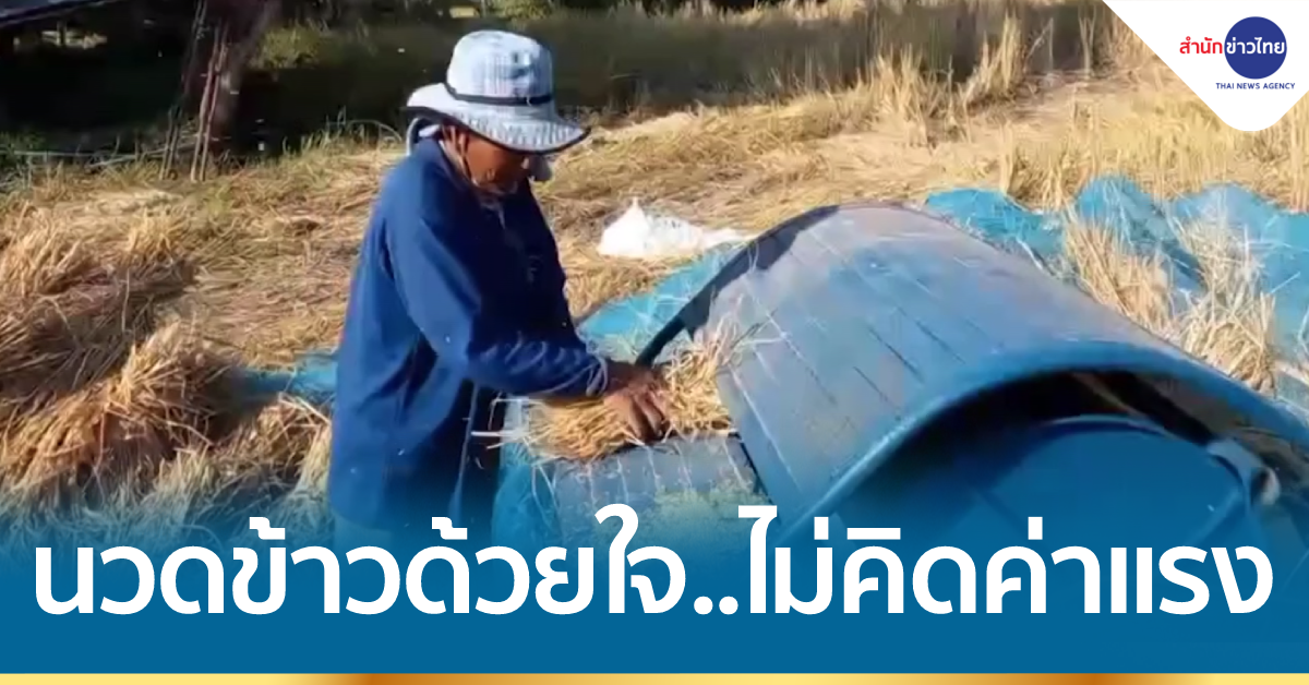 ยโสธร 24 พ.ย.- คุณลุงวัย 63 ปี ใช้ถังน้ำมันขนาด 200 ลิตร ประดิษฐ์เป็นเครื่องนวดข้าวเปลือก ใช้คู่รถไถนาเดินตาม ตระเวนนวดข้าวช่วยชาวนาโดยไม่คิดค่าแรง แต่จะขอข้าวเปลือกเป็นค่าจ้างนวดข้าวแทน