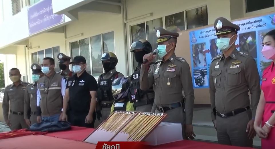 ชัยภูมิ 24 พ.ย. – ตำรวจนำตัวผู้ต้องหาชิงสร้อยคอทองคำ 49 เส้น มูลค่า 600,000 บาท จากห้างบิ๊กซีชัยภูมิ ไปทำแผนประกอบคำรับสารภาพ พบมีทองหายไปบางส่วน