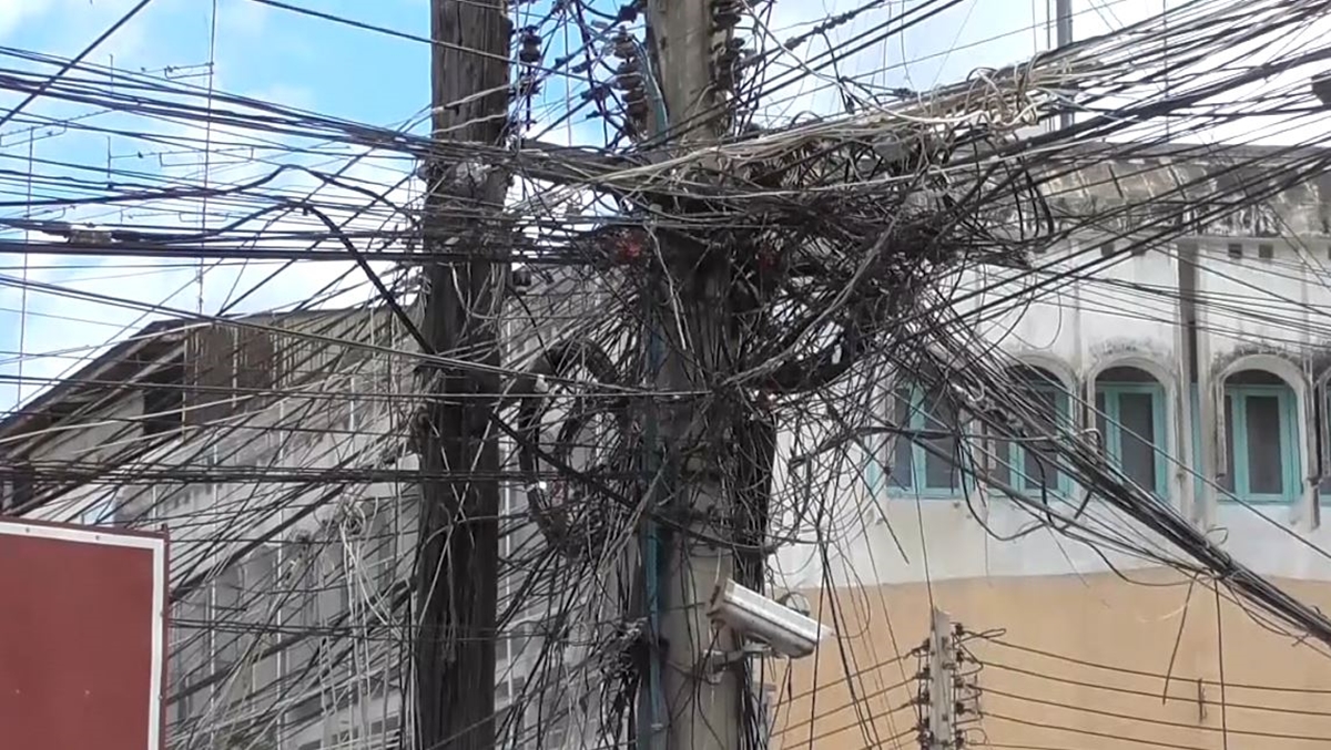 สภาพสายไฟฟ้าและสายสื่อสารที่พันกันยุ่งเหยิง บริเวณสามแยกกลางเมืองอ่างทอง สร้างความวิตกให้กับชาวบ้านที่อาศัยอยู่โดยรอบมานานหลายปีแล้ว โดยบริเวณจุดดังกล่าวมีทั้งสายไฟฟ้าและสายสื่อสารหลายพันเส้นที่พันกันเต็มไปหมด และมีบางเส้นที่ขาดปล่อยห้อยลงมายาวเกือบถึงพื้นฟุตปาธที่มีประชาชนใช้เป็นทางเดินสัญจรจำนวนมาก ซึ่งไม่สามารถตรวจสอบว่าเป็นสายไฟฟ้าหรือสายสื่อสาร และไม่มีใครกล้าเข้าไปเก็บ เนื่องจากเกรงว่าอาจจะเป็นอันตรายได้
