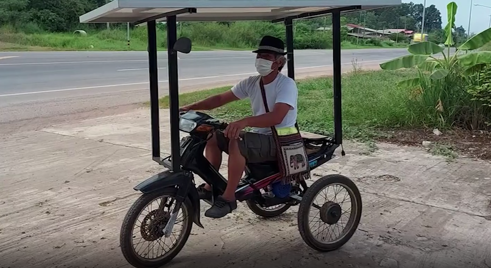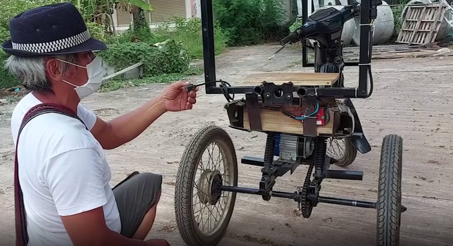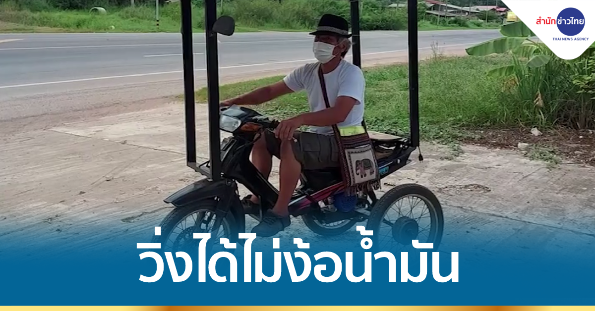 สุโขทัย 25 พ.ย.- หนุ่มสุโขทัยนักประดิษฐ์ ดัดแปลงรถจักรยานยนต์คันเก่าเพิ่มล้อ ติดแผงโซลาร์เซลล์ ใส่แบตฯ ลิเทียม มอเตอร์บรัชเลส เพื่อประดิษฐ์เป็นรถจักรยานยนต์ไฟฟ้าให้พ่อขี่ไม่ต้องง้อน้ำมันแพง สามารถชาร์จไฟฟ้าบ้าน 2 ชม.และวิ่งได้ 14 กิโลเมตร