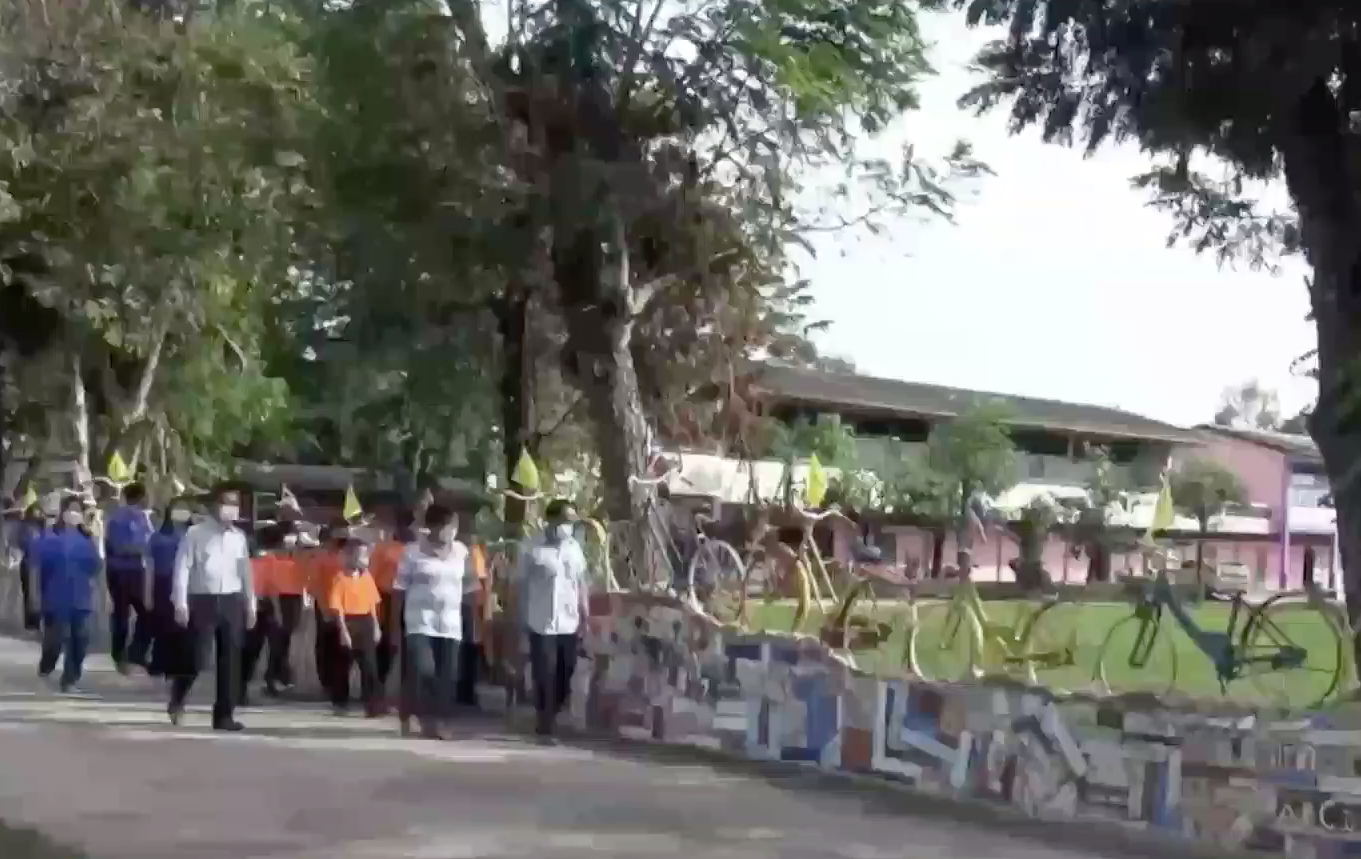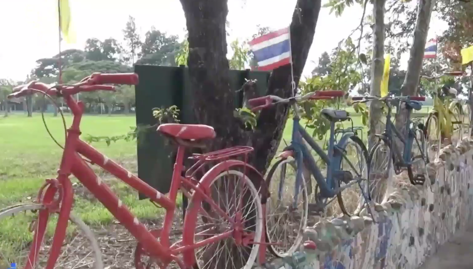 อุทัยธานี 26 พ.ย.- ไอเดียเจ๋งรั้วโรงเรียนจากจักรยานคันเก่า ประหยัด เก๋ไก๋แปลกตา ที่โรงเรียนบ้านหนองกระทุ่ม หมู่ 7 ต.เขากวางทอง อ.หนองฉาง จ.อุทัยธานี นำจักรยานคันเก่าที่ได้รับบริจาคมา นำมาพ่นสีใหม่ให้สวยงาม นำไปวางบนฐานคอนกรีตทำเป็นรั้วโรงเรียน เป็นการปรับภูมิทัศน์ของโรงเรียนและชุมชนให้น่าอยู่แบบไม่ต้องลงทุนมาก