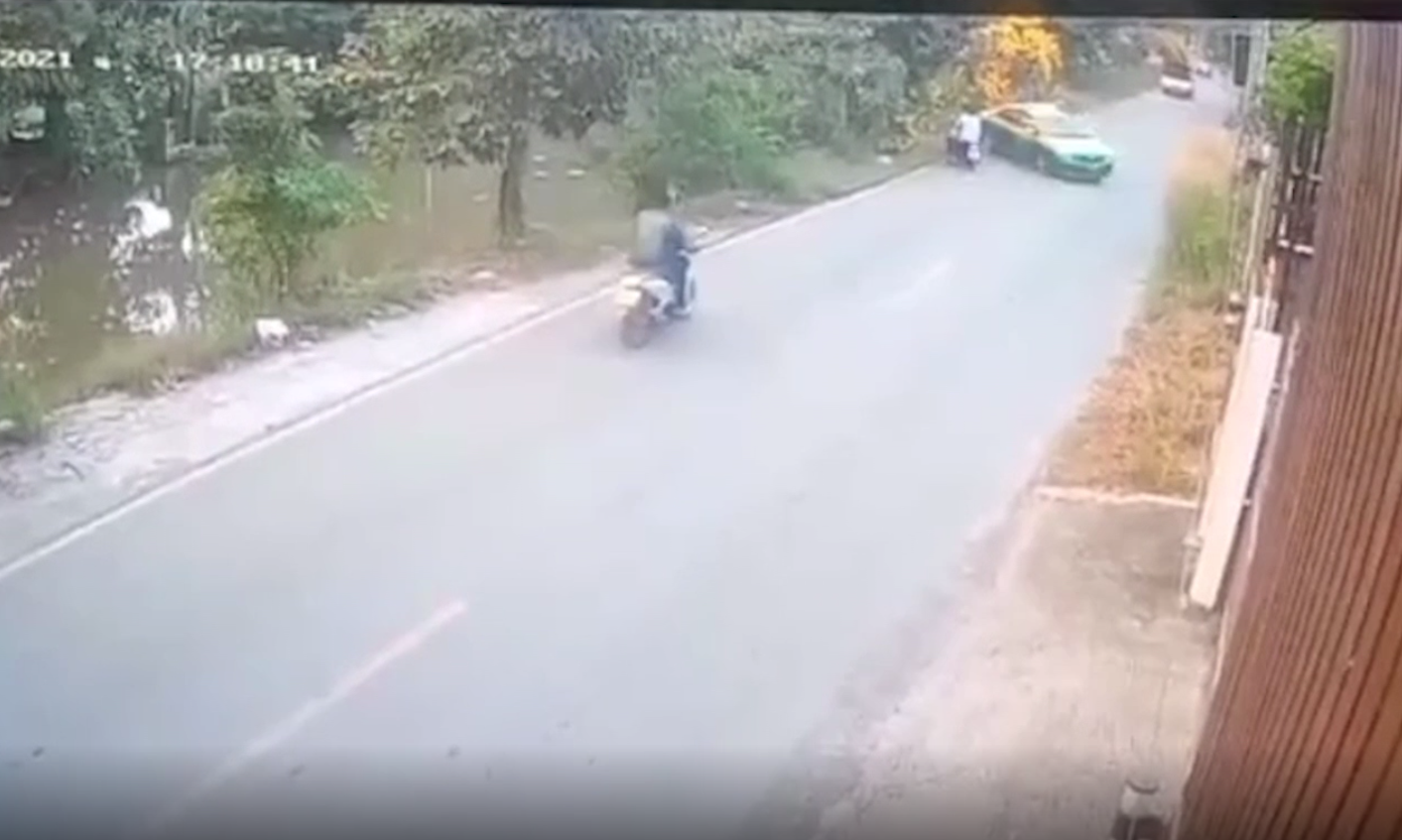 นายนราศักดิ์ เจ้าของกระบะสีขาว เล่าว่าเวลา 17.30 น. ขณะขับตามหลัง จยย. ขณะนั้นแท็กซี่คันดังกล่าวขับสวนทางมาด้วยความเร็ว และเสียหลักพุ่งชน รถ จยย.กระเด็นตกลงไปในคลองทั้งคนทั้งรถ ส่วนรถแท็กซี่เสียหลักพุ่งชนรั้วประตูหน้าบ้าน 91/391 เสียหาย ชนเสาป้ายบอกทาง ซึ่งแท็กซี่หมุนไปชนขอบสะพานและกระเด็นข้ามทางตกลงไปในคลอง ซึ่งตนก็อยากจะลงไปช่วยยายและชายที่ขี่รถ จยย. แต่ว่ายน้ำไม่เป็นจึงตะโกนให้ชาวบ้านช่วยเหลือพายายขึ้นจากคลอง แต่ยายเสียชีวิต ส่วนลูกชาย นำส่ง รพ. นอกจากนี้ยังได้มีโอกาสพูดคุยกับคนขับรถแท็กซี่ได้กลิ่นเหล้าออกมาจากปาก คิดว่าคนขับน่าจะเมามา