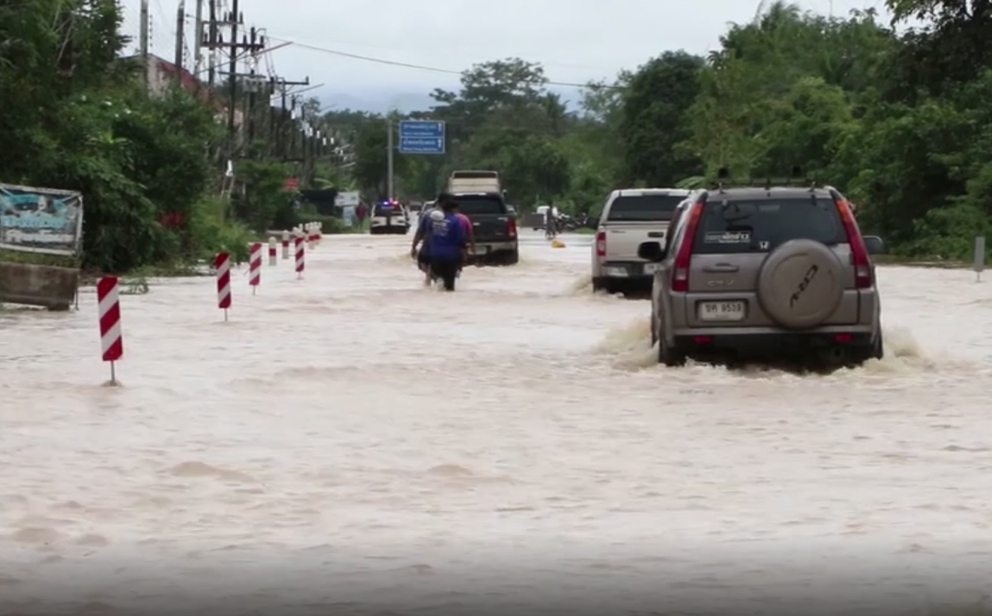 น้ำที่หลากจากเทือกเขาบรรทัดเข้าท่วมถนนสายเพชรเกษม พัทลุง ตรัง หลายจุด บางช่วงห้ามรถเล็กวิ่งผ่านโดยเด็ดขาดชั่วคราว เนื่องจากน้ำท่วมสูงเกือบ 50 ซม.