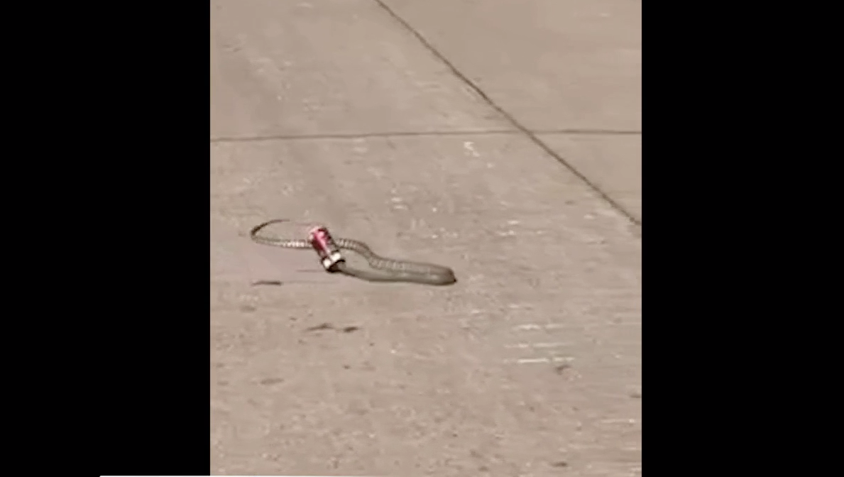 ภายในคลิปจะเห็นงูดิ้นไปมาพยายามเอาหัวออกจากกระป๋องกาแฟ ผู้ถ่ายคลิปเป็นผู้หญิง ไม่กล้าเข้าไปช่วยงู ก่อนที่จะมีผู้ชายขี่รถจักรยานยนต์ผ่านมาช่วยเหลือได้ โดยใช้ไม้กดที่หัวงูแล้วดึงกระป๋องออกมาได้สำเร็จ