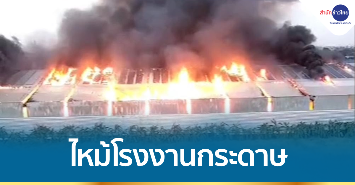 ระดมรถดับเพลิงฉีดสกัดไฟไหม้โรงงานกระดาษ ย่านบางบ่อ