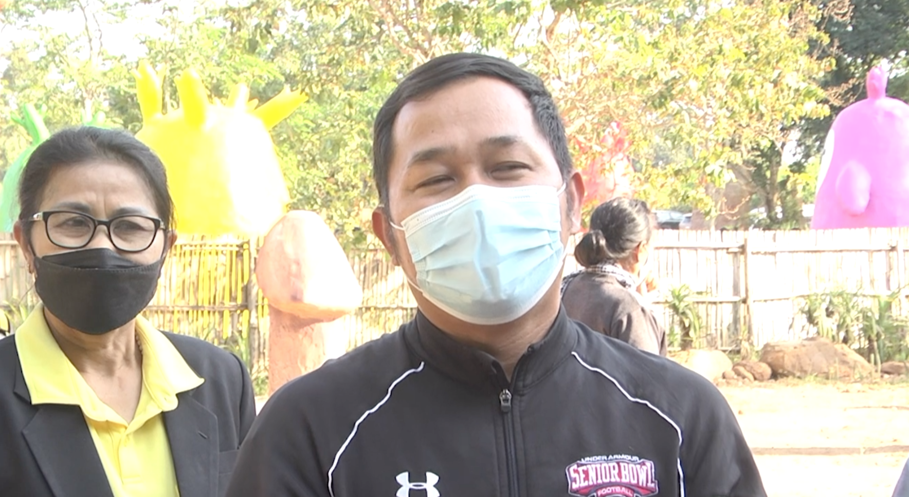 นายไตรเทพ สหะขันธ์ เจ้าของสวนไตรเทพ กล่าวว่า สิ่งก่อสร้างภายในสวนทั้งหมด เกิดจากจินตนาการ โดยไม่ได้ซ้ำแบบใคร ส่วนทุ่งกระเจี๊ยวยักษ์ ก็มาจากแนวคิดที่จะสื่อสารให้ประชาชนเห็นว่า คนที่ทำผิดจะถูกทำโทษด้วยการตัดชิ้นส่วน เพื่อประจานความชั่วร้าย เป็นคติสอนใจไม่ให้คนทำผิดในกาม ส่วนข้อความที่ทางวัฒนธรรมจังหวัดขอนแก่น ระบุว่าไม่เหมาะสมและให้แก้ไขนั้น ตนเองก็พร้อมที่จะดำเนินการทันที เพื่อไม่ให้กระทบภาพลักษณ์