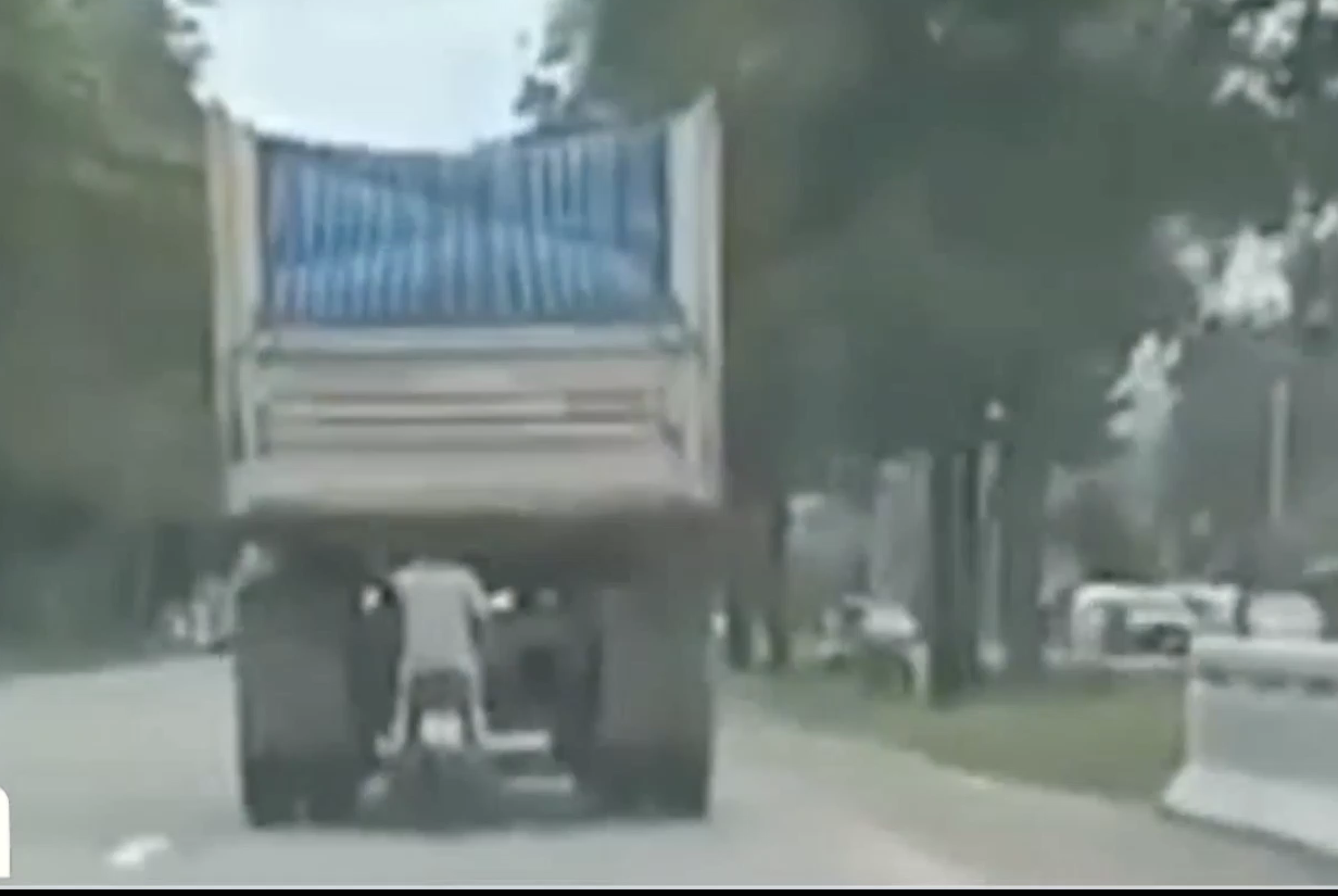 ตอนแรกเห็นชายคนนี้อายุประมาณ 40 ปี ซึ่งขี่รถจักรยานยนต์ซิ่งมา สักพักก็ชะลอรถ แต่สังเกตเห็นจากกระจกหลังเห็นชายคนนี้ยังคงขี่รถเร็วและมีรถบรรทุกอีกคันตามมา พอรถบรรทุกคันนี้แซงรถตน เห็นชายคนนี้พยายามยื่นมือจะจับท้ายรถบรรทุก และพยายามอยู่พักใหญ่จนจับท้ายรถบรรทุกได้ และดับเครื่องให้รถบรรทุกลากไป ซึ่งความเร็วตอนนี้ก็น่าจะเกิน 80 กิโลเมตรต่อชั่วโมง ซึ่งเสี่ยงและอันตรายมากหากรถบรรทุกเบรก หรือเกิดพลาด ตนจึงใช้โทรศัพท์บันทึกเหตุการณ์เอาไว้ เพราะกลัวว่าจะเกิดอันตรายขึ้นกับชายคนนี้และรถของตน จะได้มีภาพเป็นหลักฐาน โดยชายคนนี้เกาะรถบรรทุกไปประมาณ 3-4 กิโลเมตร จนถึงด่านตรวจจึงปล่อยมือ ตนจึงโล่งอกที่ชายคนนี้ปลอดภัย.-สำนักข่าวไทย