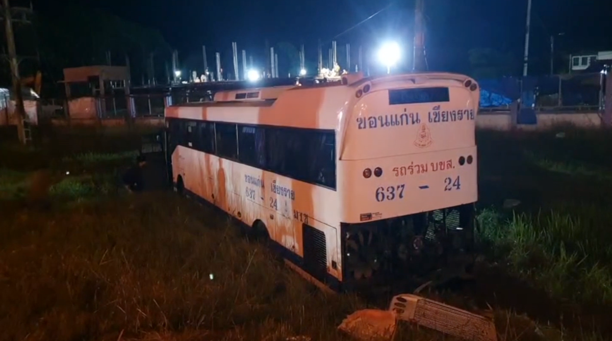 ขอนแก่น 7 ธ.ค. – รถบัสโดยสารเฉี่ยวชนรถ 6 ล้อ บรรทุกดิน เหินข้ามเกาะกลางลงข้างถนน คนขับเสียชีวิต 1 ราย ผู้โดยสารเจ็บ 5 ราย
