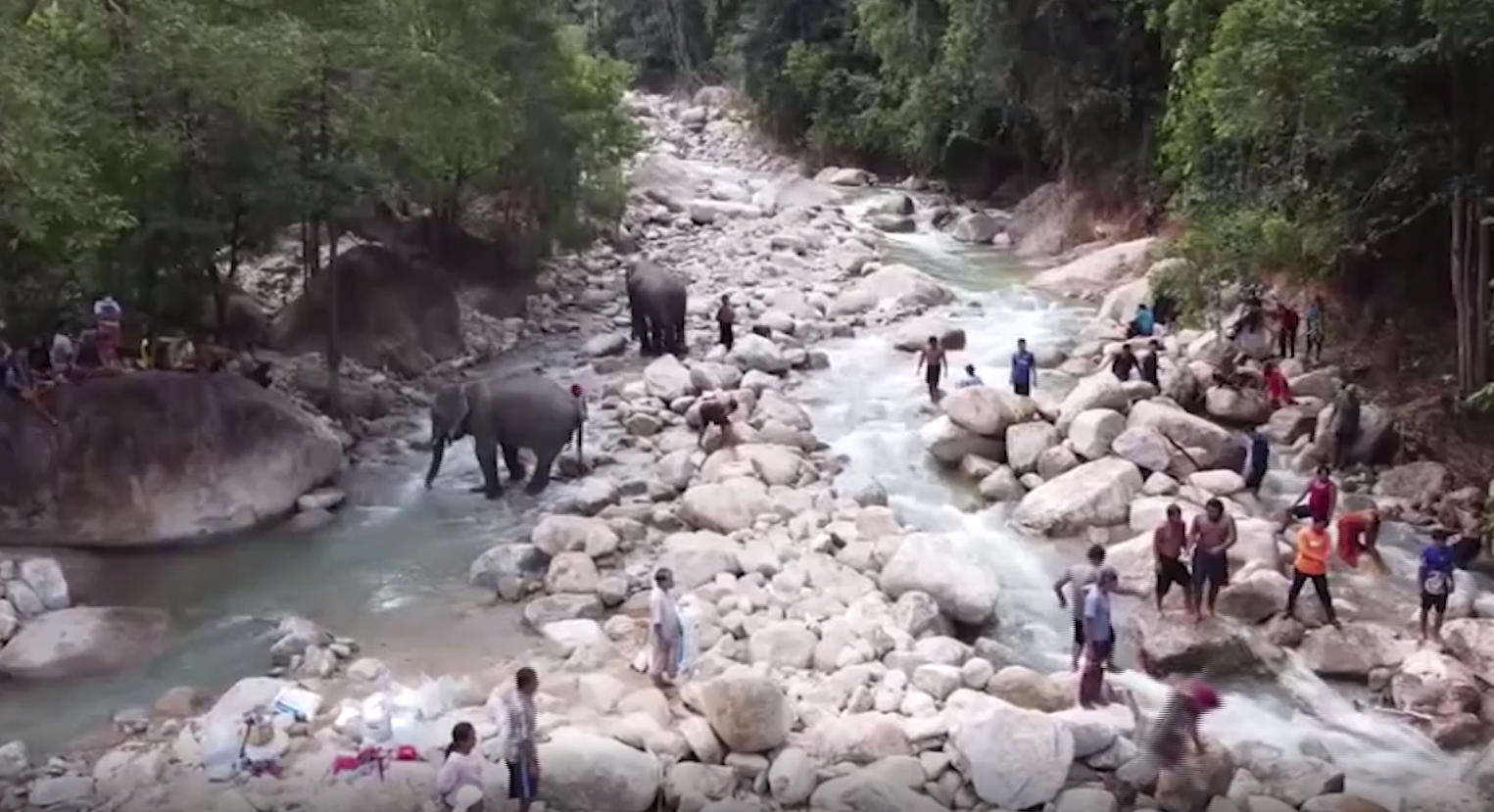 โดยชาวบ้านในพื้นที่ช่วยขุดทาง และใช้ช้างดึงลากก้อนหินขนาดใหญ่ที่ขวางกลางลำน้ำ เพื่อให้น้ำไหลผ่าน ที่ผ่านมาชาวบ้านช่วยกันขุดลอกเปิดทางน้ำมาหลายวันแล้ว แต่ยังไม่สามารถเคลื่อนย้ายหินได้ จึงต้องใช้แรงงานช้างมาช่วยกันเอง ในที่สุดก็ประสบความสำเร็จโดยไม่หวังรอหน่วยงานราชการมาช่วยเหลือ.-สำนักข่าวไทย