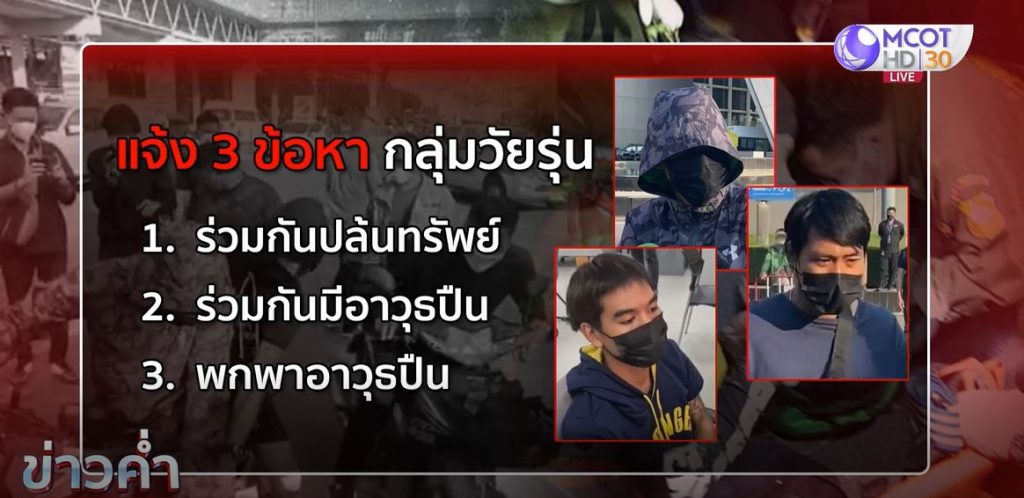 เท่ากับว่าคดีนี้ นายไอซ์เป็นคนวางแผน นายฟร๊องกับนายเอกร่วมก่อเหตุ และนายไอซ์มาสารภาพเพราะจำนนด้วยหลักฐาน ทั้งภาพจากกล้องวงจงปิดและอื่นๆ เบื้องต้นตำรวจแจ้งข้อหากับ 3 ผู้ก่อเหตุ คือ ร่วมกันปล้นทรัพย์, ร่วมกันมีอาวุธปืนและเครื่องกระสุนปืนไว้ครอบครองโดยไม่ได้รับอนุญาต, พกพาอาวุธปืนและกระสุนปืนติดตัวมาในที่สาธารณะโดยไม่ได้รับอนุญาต และแจ้ง 2 ข้อหากับไรเดอร์ คือ ทำร้ายร่างกายผู้อื่น, พกพาอาวุธติดตัวไปในหมู่บ้านและที่สาธารณะโดยไม่รับอนุญาต