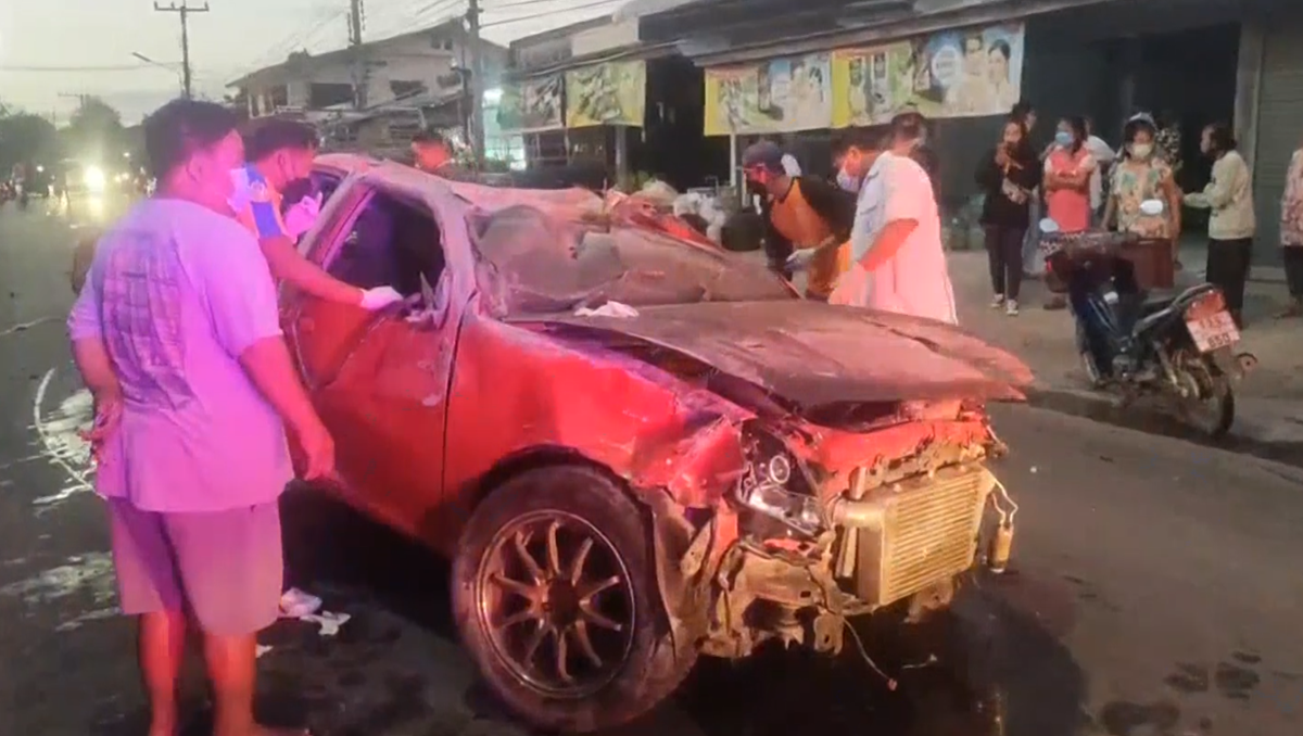 เจ้าของร้านขายของชำ เล่าว่า ตนยืนอยู่หน้าร้าน กำลังขายของให้ลูกค้า เห็นรถกระบะสีแดงเสียหลักชนอะไรสักอย่าง ก่อนหมุนคว้างหลายตลบ ชนรถยนต์ที่จอดอยู่ข้างทางหลายคัน ตนเห็นท่าไม่ดี รีบวิ่งหนีเข้าไปในบ้าน รอดตายหวุดหวิด ตกใจกับเหตุการณ์ที่เกิดขึ้น เคยเห็นแต่หน้าจอทีวี