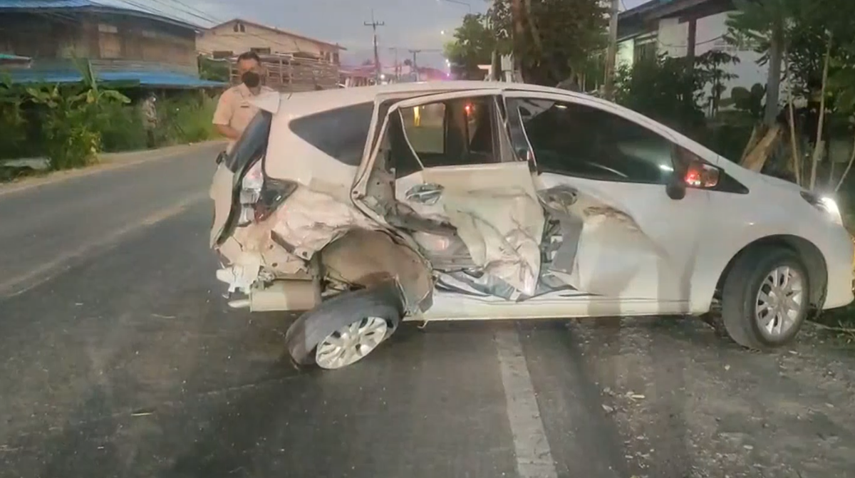 หน่วยกู้ภัยใช้เครื่องตัดถ่างช่วยเหลือนายวรวุฒิ ทัศน์นิยม อายุ 31 ปี คนขับ และ น.ส.ธิดารัตน์ บุญมาปะ อายุ 23 ปี แฟนสาว ร่างติดอยู่ภายในรถ ได้รับบาดเจ็บเล็กน้อย ก่อนปฐมพยาบาลเบื้องต้นแล้วพาส่งโรงพยาบาล