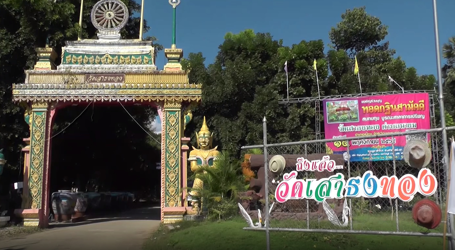 พระจักรพันธ์ เมตติโก เจ้าอาวาสวัดเสาธงทอง เผยว่าพื้นที่ดังกล่าว สมัยก่อนจะเป็นป่าช้าของหมู่บ้าน อยู่ด้านหลังวัด ต่อมามีถนนตัดผ่านหลังวัด จึงปรับปรุง พัฒนา กลายมาเป็นทางหลักที่ใช้เข้าวัด แต่ก็ยังคงมีสถูปเก็บอัฐิของผู้เสียชีวิตตั้งอยู่เช่นเดิม เมื่อปีที่แล้วทางวัดได้ปรับปรุงและทำร้านกาแฟชื่อว่า “ป่าช้าคาเฟ่” ซึ่งก็เป็นที่สนใจของนักท่องเที่ยว ในปีนี้จึงได้พัฒนาต่อยอดให้มีตลาด เพื่อให้ชาวบ้านนำอาหารพื้นบ้านมาจำหน่าย สร้างรายได้ให้แก่ชุมชน รวมทั้งให้พ่อค้าแม่ค้าได้แต่งชุด แต่งหน้าตาแบบผี เพื่อให้ตรงกับบรรยากาศของป่าช้า และนอกจากนั้นยังได้เชิญชวนชาวเพชรบูรณ์ นักท่องเที่ยว ที่จะมาเที่ยวชมให้ร่วมแต่งผีมาด้วย โดยผู้ที่แต่งผีมาก็จะได้รับเครื่องดื่มฟรี 1 แก้ว รวมทั้งได้รับตั๋วผีบอก สำหรับไปแลกอาหารได้ 1 เมนูอีกด้วย ซึ่งหลังจากเปิดตัวมาเมื่อวันเสาร์ที่ผ่านมา ปรากฏว่านักท่องเที่ยวให้ความสนใจเป็นอย่างมาก รวมทั้งได้รับการสนับสนุน จากสำนักงานวัฒนธรรมจังหวัดเพชรบูรณ์ โรงเรียนบ้านนายม รวมทั้งชาวบ้านในพื้นที่ จึงทำให้มีกำลังใจที่จะจัดกิจกรรมเช่นนี้ต่อไปเรื่อยๆ จึงขอเชิญชวนชาวเพชรบูรณ์ นักท่องเที่ยว มาเที่ยวชม และเลือกซื้อสินค้า อุดหนุนสินค้าพื้นเมือง พร้อมกับถ่ายภาพกับผีๆ ได้ทุกวัน โดยเฉพาะวันเสาร์-อาทิตย์ พ่อค้าแม่ค้าแต่ละคนเรียกว่าจัดเต็ม ซึ่งนักท่องเที่ยวนอกจากได้ความสุข ความประทับใจแล้ว ยังเป็นการอุดหนุนสร้างกำลังใจให้แก่ชาวบ้าน และนอกจากนั้นรายได้ส่วนหนึ่งก็จะนำไปทำนุบำรุงศาสนา นอกจากอิ่มท้องแล้วยังได้บุญ เรียกว่าอิ่มทั้งกายอิ่มทั้งใจกันเลยทีเดียว.-สำนักข่าวไทย