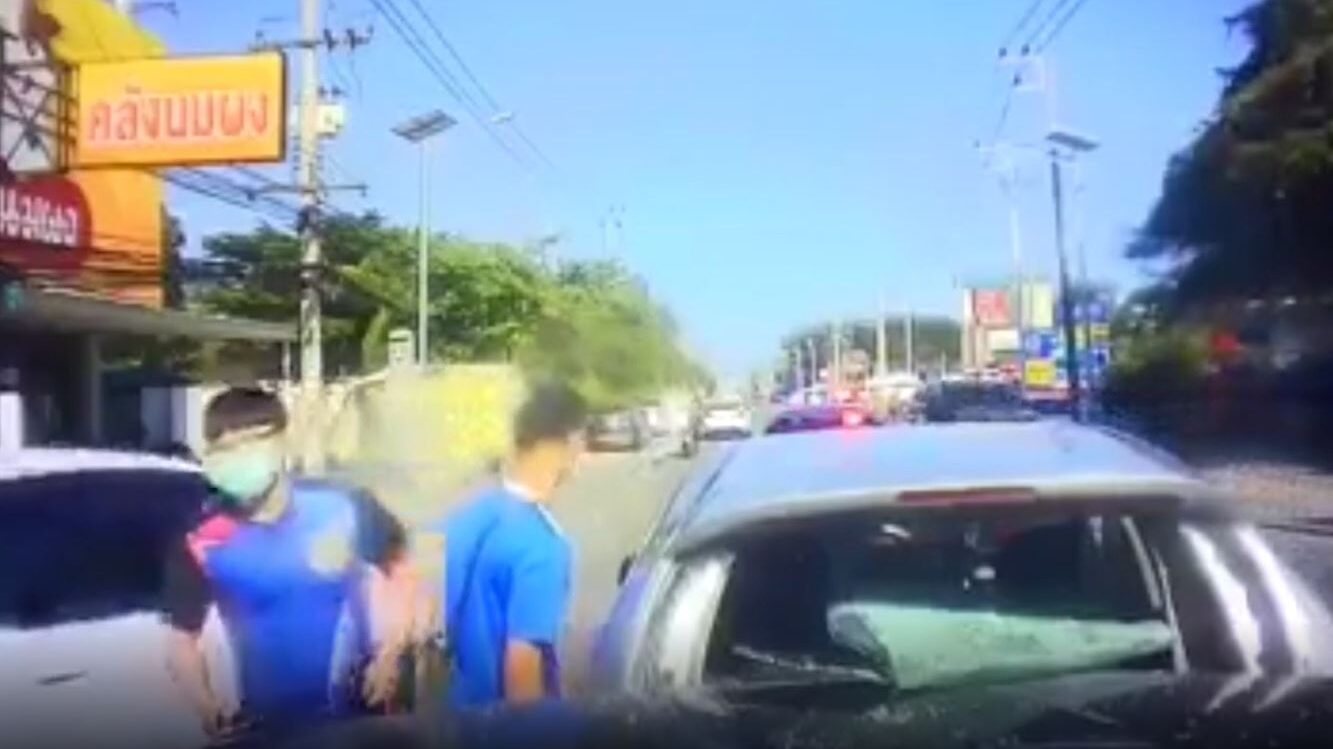 สอบถาม ชาวบ้าน ที่อยู่ในบริเวณที่เกิดเหตุ เปิดเผยว่า ขณะอยู่ในร้าน ได้ยินเสียงรถชนกัน จึงเดินออกมาดู หลังจากนั้นเห็นรถเก๋ง ขับเดินหน้าไป นึกว่าจะขับไปจอดเคลียร์กัน แต่ปรากฏว่า รถเก๋งถอยหลังมาชนรถกระบะคู่กรณีอย่างแรง จนคนขับหัวโยกไปมา แล้วหลังจากนั้นคนขับรถเก๋ง ก็เดินลงมาเอะอะโวยวายส่งเสียงดัง เคาะกระจกรถยนต์ฟอร์ด จนมีกู้ภัยมาตรวจสอบ หลังจากนั้น อีกสักครู่ใหญ่ ลูกชายของคนขับกระบะมาถึงที่เกิดเหตุ ไม่นานก็มีเหตุทะเลาะวิวาทกัน จนคนแถวนั้นร้องห้าม แต่ก็ไม่เป็นผล จนกระทั่งทั้งสองฝ่ายต่อยกันเหนื่อย กู้ภัยจึงเข้าไปแยกออกมาได้สำเร็จ