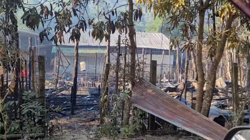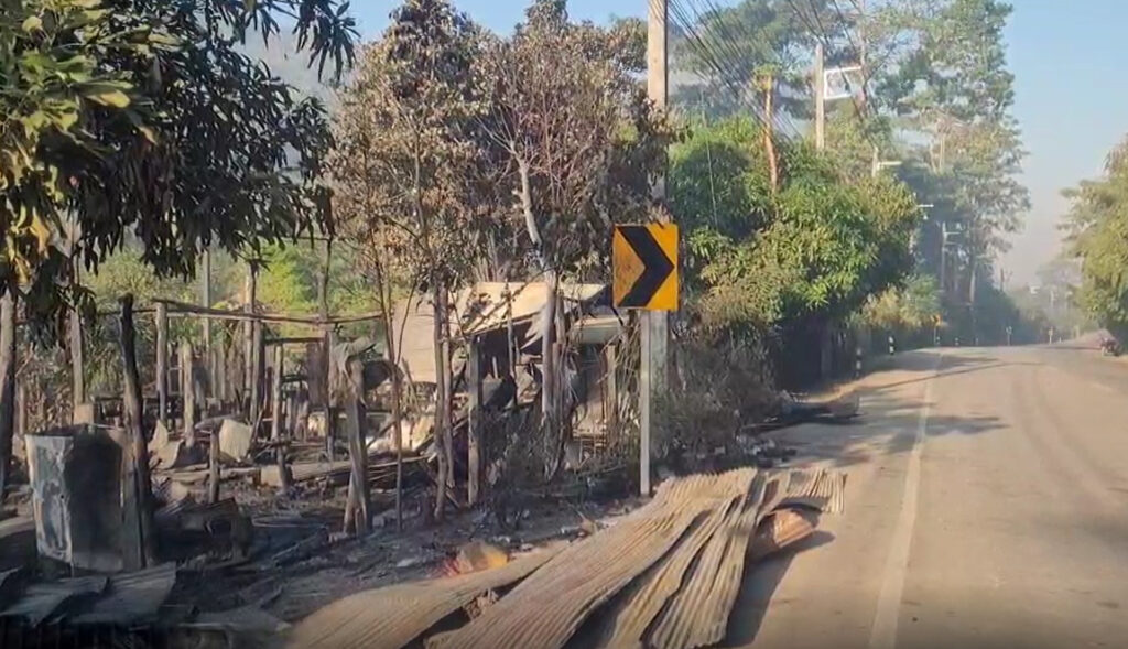 ตาก 15 ธ.ค.-เจ้าหน้าที่ยังตรึงกำลังรอบศูนย์พักพิงชั่วคราวผู้หนีภัยการสู้รบบ้านแม่หละ อ.ท่าสองยาง จ.ตาก หลังผู้หนีภัยนับพันคน ลุกฮือก่อจลาจลภายในศูนย์ ทำลายและจุดไฟเผาทรัพย์สินของเจ้าหน้าที่เสียหายอย่างหนัก เบื้องต้นคาดไม่พอใจ ถูกเตือนให้ใส่หน้ากากอนามัยและถูกยึด จยย.