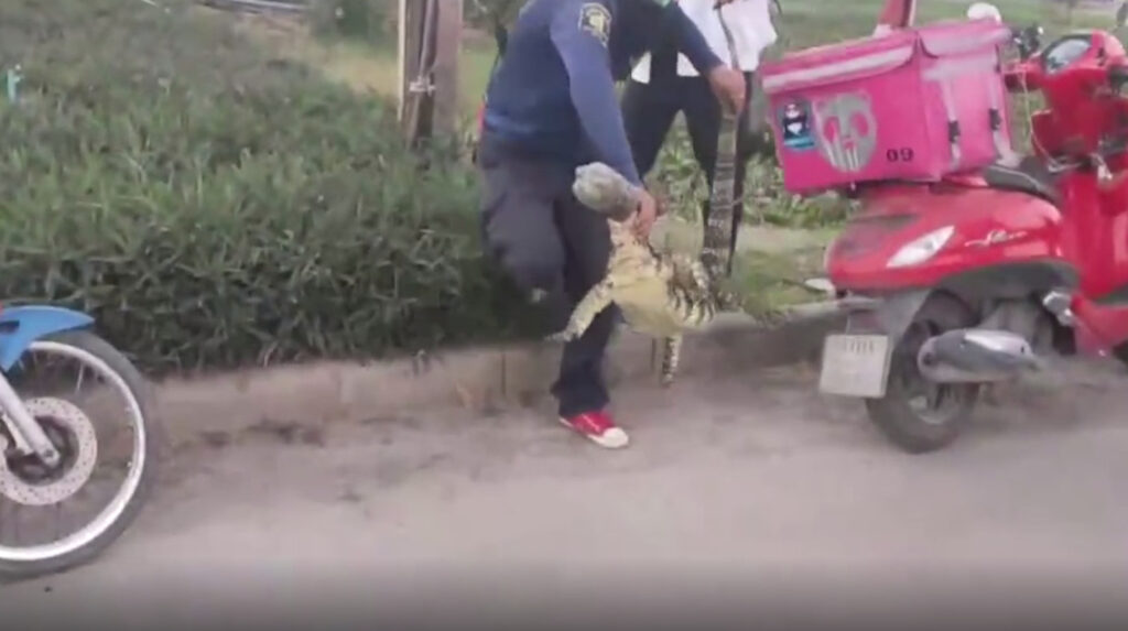 เจ้าหน้าที่อาสากู้ภัยสว่างรัตนตรัยธรรมสถานสระบุรี รับแจ้งจากพนักงานส่งอาหาร ว่าพบตัวเงินตัวทองดิ้นรนกระเสือกกระสน บริเวณบ่อน้ำปากทางเข้าหมู่บ้านเดอะ วิลเลจ ต.ปากข้าวสาร อ.เมือง จ.สระบุรี จึงเข้าตรวจสอบที่เกิดเหตุ พบว่ามีตัวเงินตัวทองกำลังดิ้น เนื่องจากขวดพลาสติก ขนาดใหญ่ ติดอยู่ที่ปาก ภายในขวดมีน้ำอยู่เต็มขวด ทำให้ไม่มีอากาศหายใจ จึงดิ้นกระเสือกกระสน เหมือนขอความช่วยเหลือ เจ้าหน้าที่กู้ภัยฯ จึงจับขึ้นมาจากบ่อ แล้วเอาน้ำออกจากขวดเพื่อให้มีอากาศหายใจ จากนั้นได้ใช้มีดตัดขวดพลาสติกออก เหมือนได้ชีวิตใหม่ วิ่งออกไปตามถนนทางเข้าหมู่บ้าน จากนั้นเจ้าหน้าที่กู้ภัยฯจึงนำออกไปปล่อยบริเวณป่า เพื่อกลับคืนสู่ธรรมชาติต่อไป