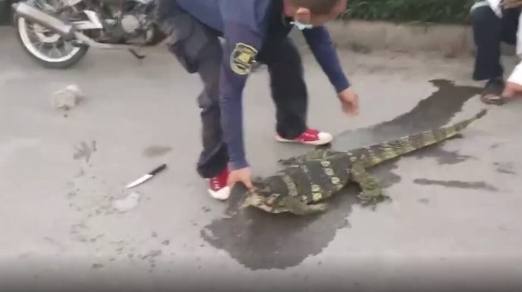 สอบถามนายสันติสุข เกือกกุด อายุ 35 ปี พนักงานส่งอาหาร เล่าว่าขณะที่ตนเองขับรถจักรยานยนต์มาเพื่อที่จะเข้ามาส่งอาหารภายในหมู่บ้าน เห็นตัวเงินตัวทองนอนดิ้นอยู่กลางถนน เนื่องจากมีขวดไปติดอยู่ที่ปากจนถึงบริเวณคอ จึงเกิดความสงสาร ตนเองกับยามหน้าหมู่บ้าน จึงช่วยกันเอาไม้กั้นไว้เพื่อไม่ให้ตัวเงินตัวทองลงน้ำ เกรงว่าจะจมน้ำตาย จากนั้นจึงได้โทรเรียกเจ้าหน้าที่กู้ภัยฯให้มาช่วย ซึ่งก่อนกู้ภัยฯ จะมาถึง ตัวเงินตัวทองวิ่งลงบ่อน้ำไป จากนั้นก็กระเสือกกระสนขึ้นมาจากบ่อน้ำ จากนั้นกู้ภัยฯ ก็ทำการช่วยเหลือจนตัวเงินตัวทองปลอดภัย ซึ่งตนคิดว่าได้ช่วยเหลือชีวิตสัตว์ไว้ด้วย “หนึ่งชีวิตก็มีคุณค่า” ส่วนตัวรู้สึกภูมิใจ และดีใจ ซึ่งถ้าช่วยไม่ทันตัวเงินตัวทองอาจจะตายได้.-สำนักข่าวไทย