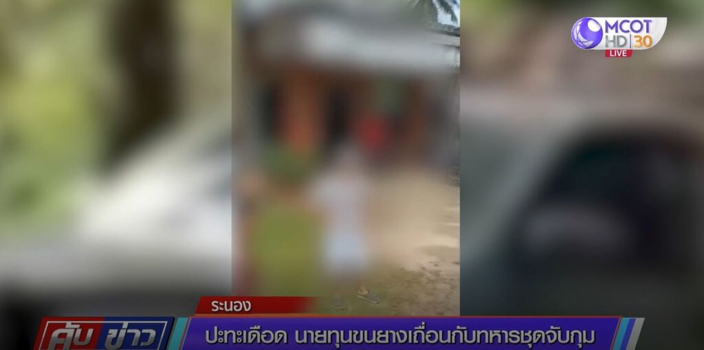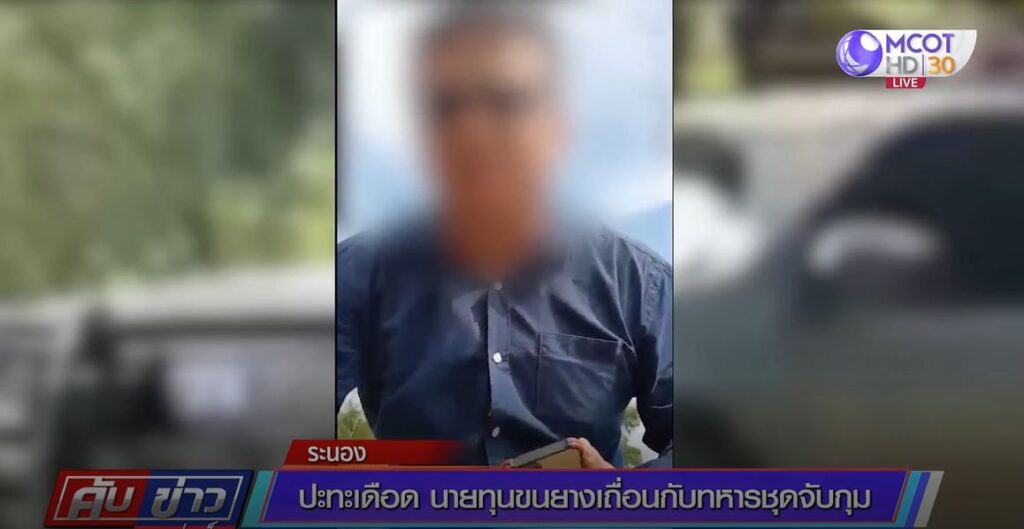 โดยในหว่างที่เจ้าหน้าที่ปฏิบัติงาน มีกลุ่มนายทุนในพื้นที่ อ.กระบุรี ซึ่งคาดว่าเป็นเจ้าของยางหรือผู้ดูแลการขนยาง เข้ามาสอบถามเจ้าหน้าที่ พร้อมพูดข่มขู่เจ้าหน้าที่ว่าทำเกินกว่าเหตุ อ้างการขนยางพาราผิดกฎหมายจากประเทศเมียนมาเข้ามาจำหน่ายใน จ.ระนอง ผู้มีอิทธิพลรายดัง พร้อมพวก เคลียร์กับนายทหารชั้นผู้ใหญ่ที่สุดใน จ.ระนองแล้ว