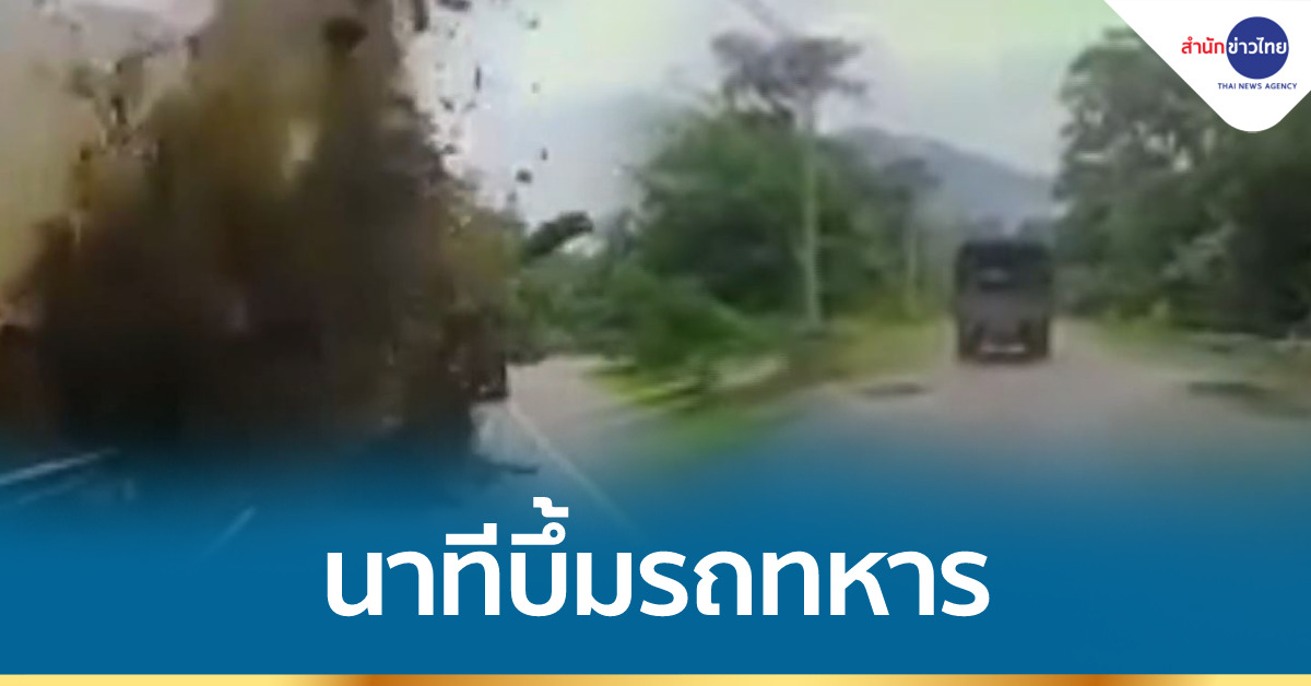 นราธิวาส 16 ธ.ค.-กล้องหน้ารถบันทึกภาพวินาที คนร้ายวางระเบิด กดชนวนใส่รถทหารที่กำลังวิ่งอยู่ในพื้นที่สากอ อ.สุไหงปาดี จ.นราธิวาส ไม่มีผู้บาดเจ็บหรือเสียชีวิต