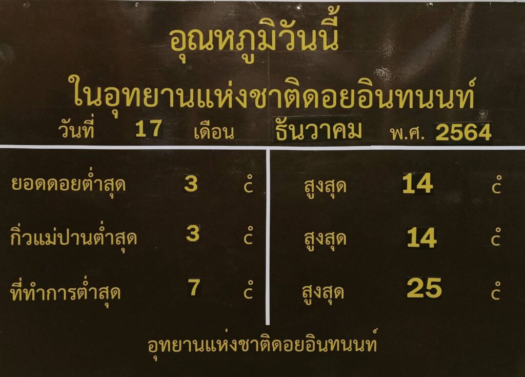 โดยเช้าวันนี้ ตามยอดหญ้าใบไม้บริเวณลานจอดรถบนยอดดอยอินทนนท์ กลายเป็นน้ำค้างแข็ง หลังอากาศยังหนาวเย็นต่อเนื่อง อุณหภูมิต่ำสุดอยู่ที่ 3 องศาเซลเซียส นับเป็นการเกิดน้ำค้างแข็งหรือเหมยขาบครั้งที่ 8 แล้วในเดือนธันวาคมนี้ ท่ามกลางนักท่องเทียวที่ยังแห่ขึ้นไปสัมผัสความหนาวและชมความสวยงามของธรรมชาติบนดอยอินทนนท์ โดยศูนย์อุตุนิยมวิทยาภาคเหนือแจ้งว่า ความกดอากาศสูงหรือมวลอากาศเย็นจะอ่อนกำลังลง อุณหภูมิจะสูงขึ้น 1-2 องศาเซลเซียส แต่อากาศยังหนาวเย็นอุณหภูมิพื้นราบต่ำสุดอยู่ที่ตัวเมืองเชียงราย 11.7 องศาเซลเซียส.-สำนักข่าวไทย