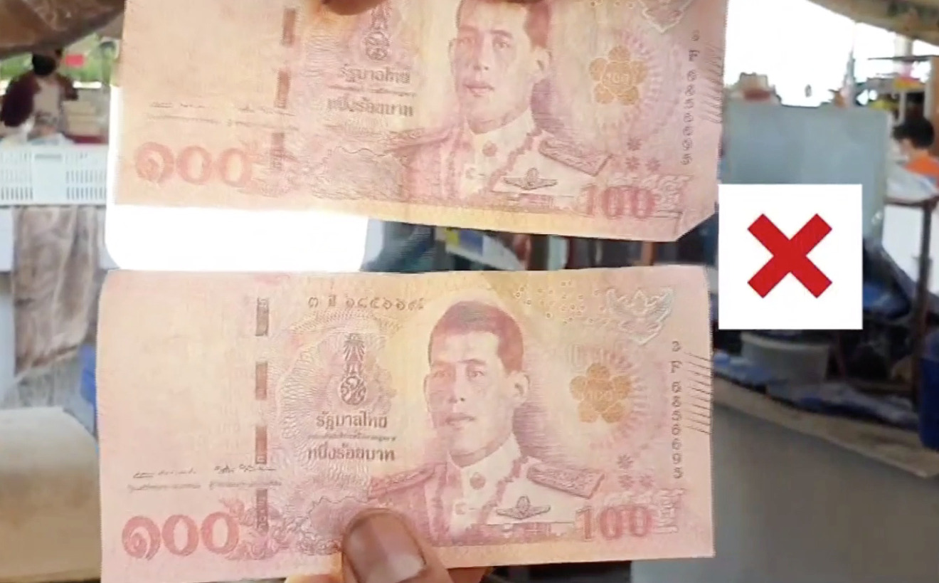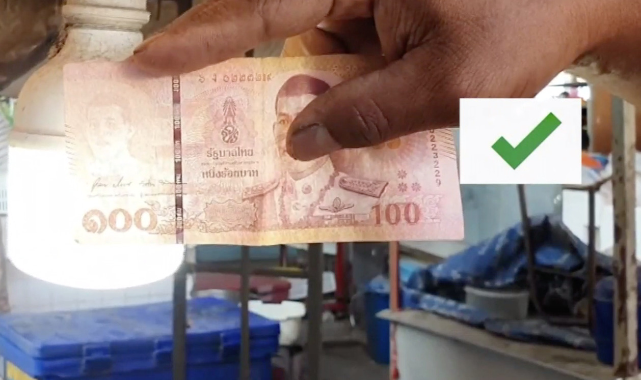 นายจักรี เกตุใหม่ พ่อค้าร้านไข่ไก่นำธนบัตรชนิด 100 บาท 2 ใบ มาตรวจดูพบว่ามีลักษณะสีซีดจางกว่าธนบัตรปกติ เมื่อนำมาตรวจสอบโดยการส่องกับแสงสว่าง มองไม่เห็นลายน้ำ พื้นผิวสัมผัสเนื้อธนบัตรใบเรียบ คล้ายกระดาษธรรมดา ไม่มีผิวนูนจากหมึกพิมพ์บนผิวกระดาษเหมือนธนบัตรทั่วไป ที่สำคัญชุดตัวเลขประจำธนบัตรทั้ง 2 ใบเป็นชุดตัวเลข 3ฉ6856695 ชุดเดียวกันทั้ง 2 ใบ จึงได้นำไปสอบถามร้านค้าใกล้เคียง ต่างพูดเป็นเสียงเดียวกันว่า เป็นธนบัตรปลอมอย่างแน่นอน