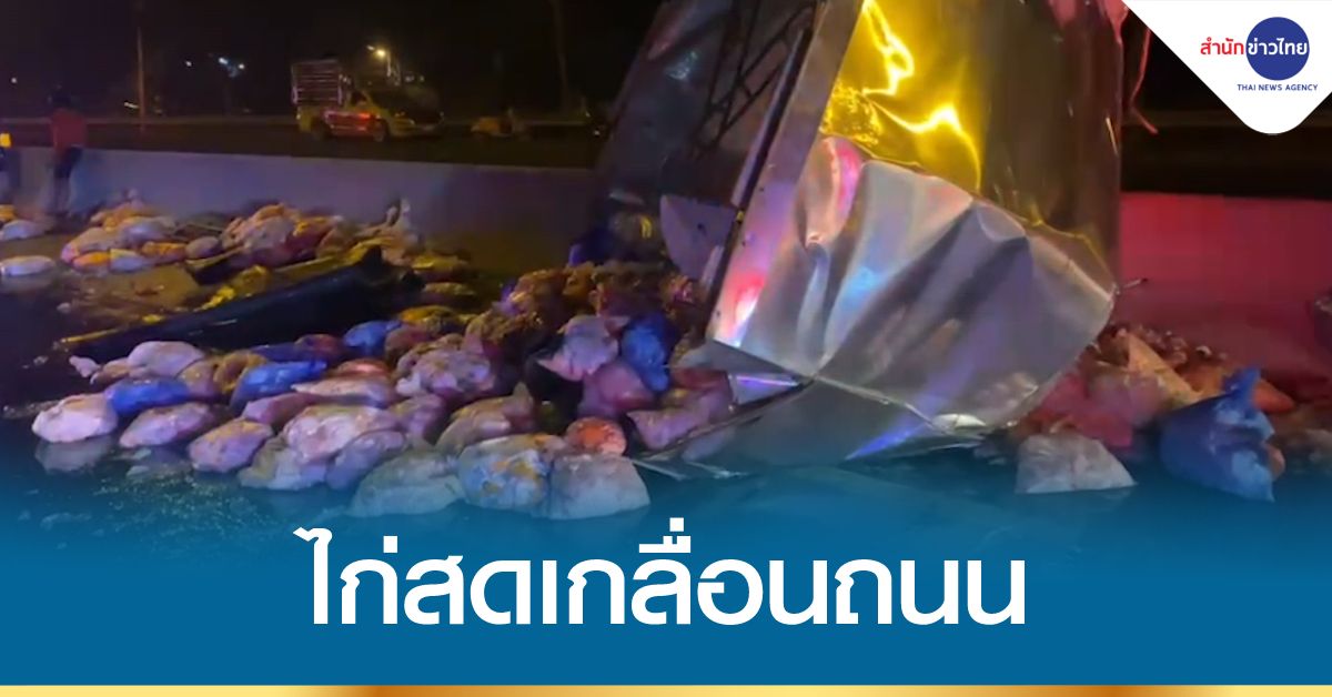 ปทุมธานี 21 ธ.ค. – เกิดอุบัติเหตุรถกระบะบรรทุกไก่สด 2 ตัน ยางแตกเสียหลักพลิกคว่ำ ย่านคลอง 8 จ.ปทุมธานี ชิ้นส่วนไก่สดกระจายเกลื่อนถนน