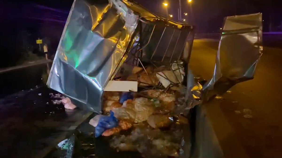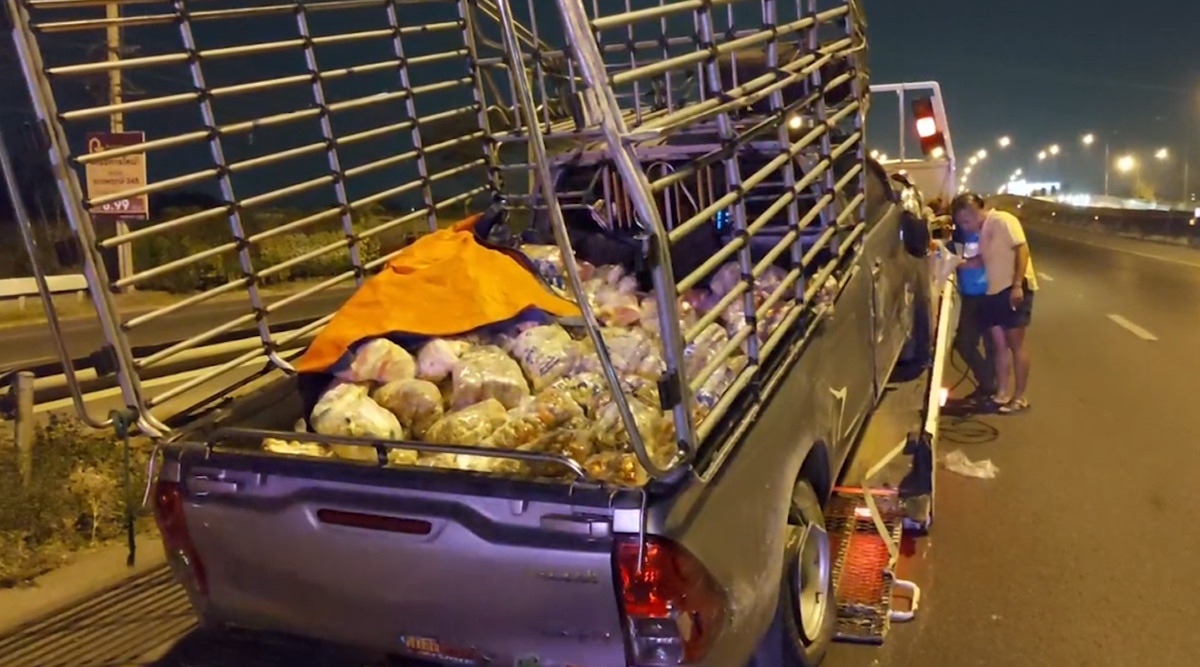 เหตุการณ์นี้เกิดขึ้นบริเวณหน้าปั๊มน้ำมัน คลอง 8 อ.ธัญบุรี จ.ปทุมธานี พบรถกระบะ ทะเบียน 3 ฒจ 498 กรุงเทพมหานคร สีขาว ตอนเดียว เสริมคอกทึบ สภาพพลิกคว่ำหงายท้องล้อชี้ฟ้า และมีชิ้นส่วนไก่สดบรรจุอยู่ในถุงพลาสติกตกกระจายเกลื่อนถนน