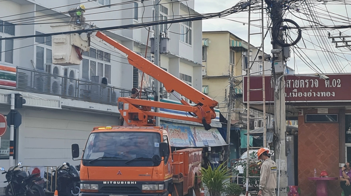 อ่างทอง 23 ธ.ค. – ชาวอ่างทองเฮลั่น การไฟฟ้าส่วนภูมิภาคแก้ไขปัญหาจัดระเบียบสายไฟสื่อสารกลางเมืองที่ยุ่งเหยิงมานานหลายปีเรียบร้อยแล้ว
