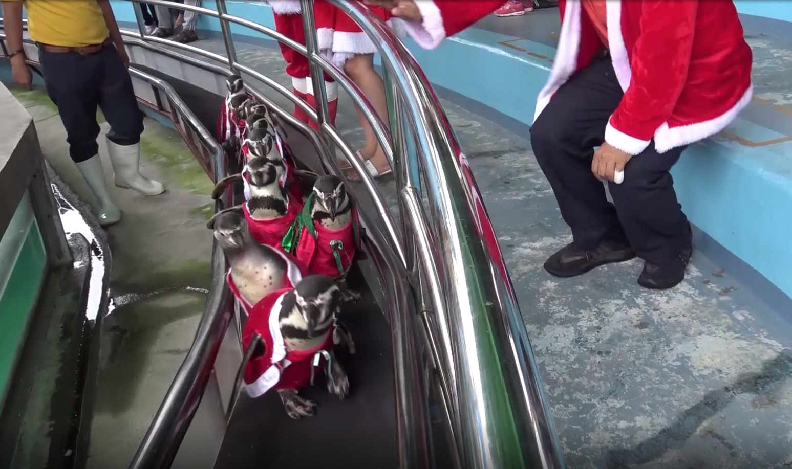 เมื่อวานนี้ที่สวนสัตว์สงขลาก็จับ “เพนกวิน” แต่งตัวเป็นซานต้า เดินเรียงแถวชุดเขียว-ชุดแดง น่ารักน่าเอ็นดู สร้างสีสันความประทับใจ และรอยยิ้มให้กับเด็กๆและประชาชนที่มาเที่ยวชมสวนสัตว์เป็นอย่างมาก.-สำนักข่าวไทย