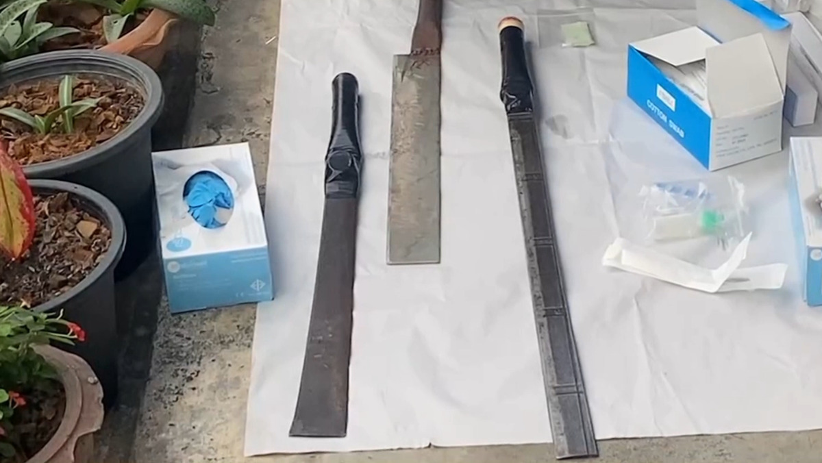 นอกจากนี้ ในที่เกิดเหตุยังพบมีดดาบยาวกว่า 60 เซนติเมตร จำนวน 3 เล่ม ปลอกกระสุนปืนขนาด .22 จำนวน 3 ปลอก เจ้าหน้าที่จึงเก็บไว้เป็นหลักฐาน