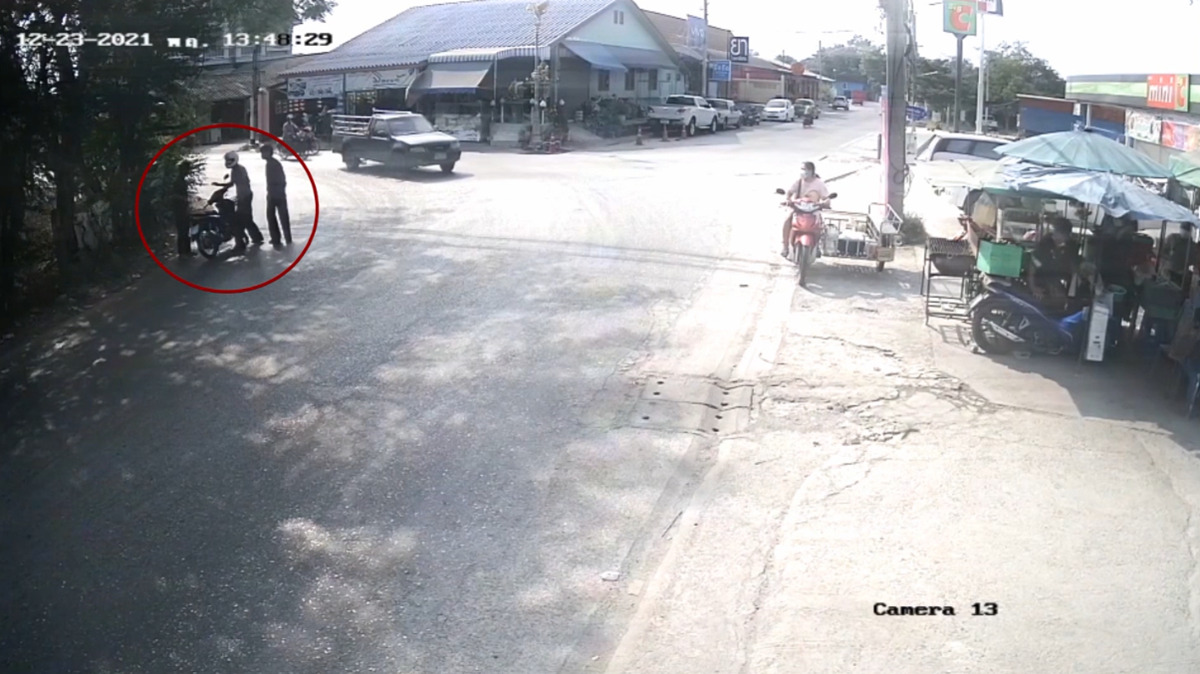 ล่าสุดทีมข่าวได้ภาพวงจรปิดวินาทีเกิดเหตุ จะเห็นว่า มือปืนซ้อนท้ายรถจักรยานยนต์ฮอนด้า เวฟ มากัน 3 คน ถูกผู้ตายไล่ฟันมาจากด้านใน เมื่อมาถึงที่เกิดเหตุ ซึ่งเป็นทางแยก มีคนสัญจรผ่านไปมาจำนวนมาก มือปืนจึงหยุดรถและกำลังจะวิ่งหนี แต่ผู้ตายตามมาทัน จอดรถและควงมีดลงมาไล่ฟันมือปืน มือปืนและเพื่อนจึงจูงรถวิ่งข้ามถนน แต่ด้วยความรีบเร่ง ทำให้รถเสียหลักพุ่งชนเสาไฟฟ้า ผู้ตายเมื่อตามไปทัน พยายามจะใช้ดาบฟัน มือปืนจึงยิงสวนกลับทันที