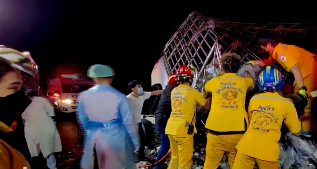 24 ธ.ค. – รถร่วม บขส. กรุงเทพ-เลย เบรกติดจนยางระเบิดไฟลุก ผู้โดยสารหนีตายลงจากรถกันอลหม่าน