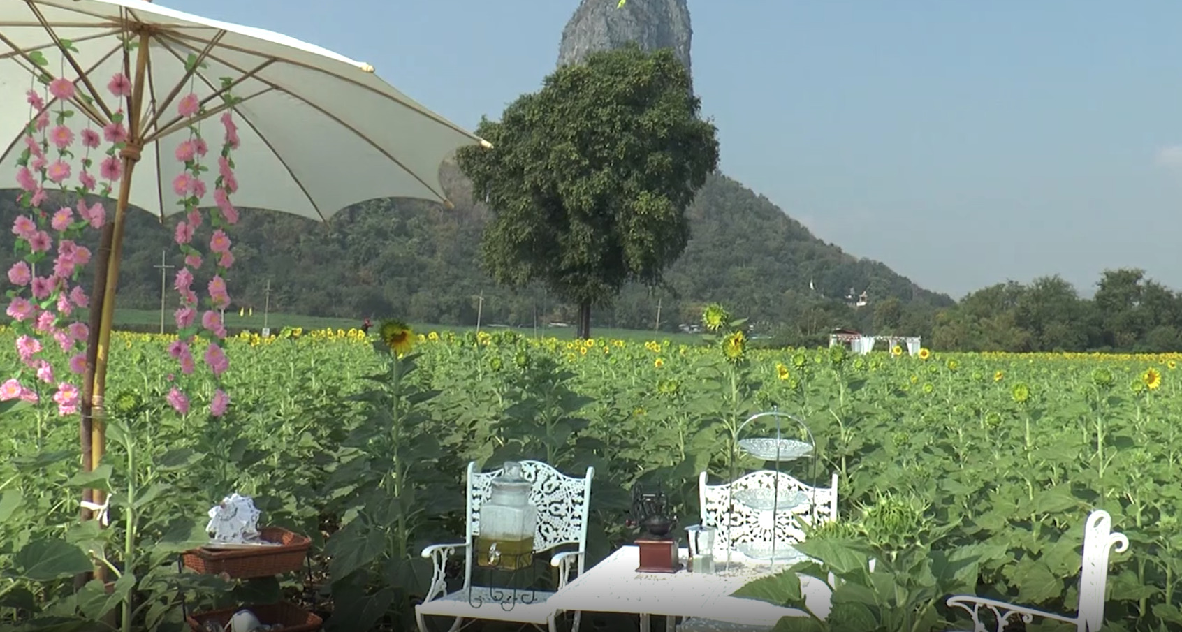 ทุ่งดอกทานตะวันภายในไร่จำรัสใน จ.ลพบุรี ที่กำลังออกดอกชูช่อรอรับแสงแดดยามเช้า ท่ามกลางบรรยากาศธรรมชาติกลางหุบเขาจีนแล หรือเขาโด่ บ้านหนองขาม ต.นิคมสร้างตนเอง จ.ลพบุรี ที่นี่เรียกได้ว่าเป็นทุ่งทานตะวันยอดนิยมในหมู่นักท่องเที่ยวที่เฝ้ารอถ่ายรูปคู่กับดอกทานตะวันทุกปี ซึ่งทุ่งทานตะวันแห่งนี้ถือเป็นทุ่งทานตะวันที่สวยงามที่สุดในประเทศไทย มีจุดให้นักท่องเที่ยวได้ถ่ายรูปอย่างมากมาย