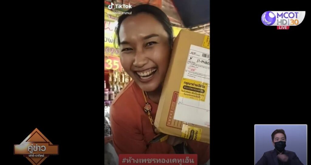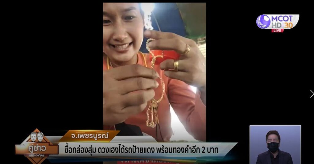 ผู้สื่อข่าวจึงเดินทางไปพูดคุยกับนางสาวอรุณศรี คำมูล อายุ 35 ปี แม่ค้าขายมะขามหวาน ที่โชคดีส่งท้ายปี เปิดเผยว่า ตนติดตามเพจดังกล่าวมานานหลายปีแล้ว จึงมีความมั่นใจและเชื่อใจในเพจ กระทั่งเมื่อวันที่ 14 ธันวาคมที่ผ่านมา ทางเพจมีการไลฟ์และจัดกล่องสุ่มเซอร์ไพรส์ทอง มูลค่ากล่องละ 50,000 บาท ซึ่งตนไม่แน่ใจว่าจำนวนกี่กล่อง และจะมีผู้โชคดี 5 คน ที่จะได้รถยนต์เก๋งยี่ห้อซูซูกิ และยังมีรางวัลรถจักรยานยนต์อีกจำนวนหลายคัน ตนจึงตัดสินใจเข้าไป cf กล่องสุ่มเซอร์ไพรส์ทอง และก็ได้จริงๆ ตอนนั้นคิดเพียงว่าถึงไม่ได้รถยนต์ อย่างน้อยก็ได้ทองที่อยู่ในกล่องสุ่ม