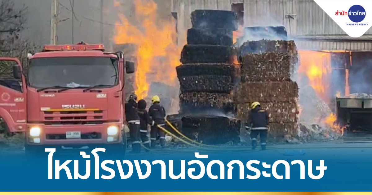 ชลบุรี 26 ธ.ค.- เกิดเหตุไฟไหม้โกดังอัดกระดาษรีไซเคิลขนาดใหญ่ เนื้อที่กว่า 2 ไร่ ริมถนนหนองยายบู่-หนองค้อ ในพื้นที่อำเภอศรีราชา จังหวัดชลบุรี มีคนงานได้รับบาดเจ็บ 6 คน