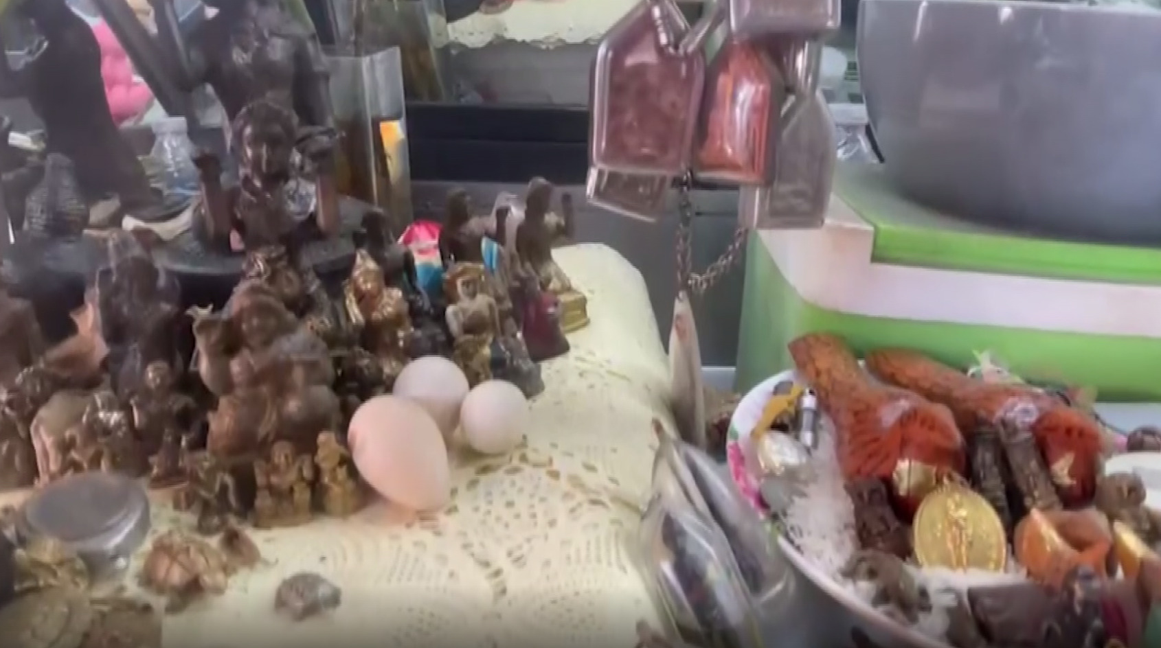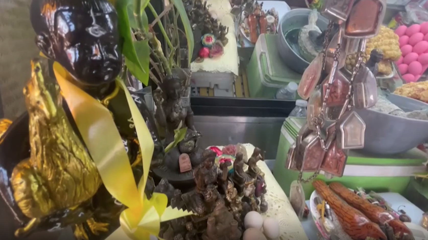 ร้าน “เจ๊แดงอาหารตามสั่ง” ริมเขื่อนเรียงหินด้านหน้าสถานีตำรวจภูธรเมืองอ่างทอง ผู้สื่อข่าวเดินทางไปพิสูจน์หลังทราบว่า ร้านแห่งนี้นอกจากจะทำอาหารอร่อยแล้วยังมีความแปลกที่ลูกค้าต้องอึ้งเมื่อเจ้าของร้านนำพระบูชา และพระเครื่องนับร้อยองค์จัดเรียงไว้ภายในตู้กับข้าวที่เป็นที่วางวัตถุดิบในการทำอาหารตามสั่งไม่ว่าจะเป็น หมูกรอบ ไข่เค็ม ไข่เยี่ยวม้า และผักชนิดต่างๆ จะมีพระเครื่องและพระบูชาจัดเรียงไว้โดยรอบนับร้อยองค์ รวมถึงรูปปั้นไอ้ไข่อีกหลายองค์ที่นำมาตั้งอยู่ในตู้นอกจากนี้บริเวณด้านนอกยังพบทั้งพระบูชา เรือไม้บูชา รูปหล่อสมเด็จโตและพระอื่นๆ อีกเป็นจำนวนมาก