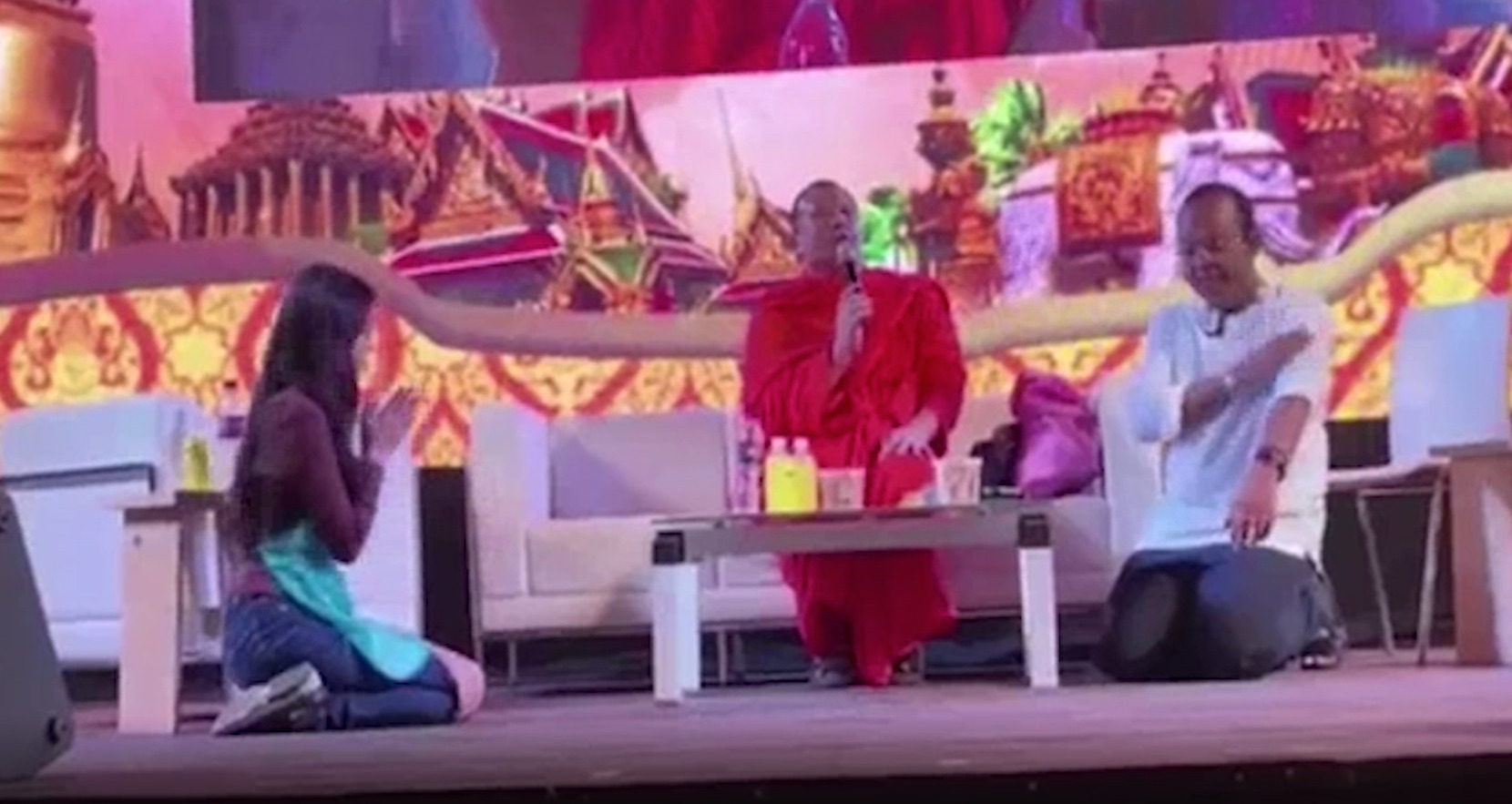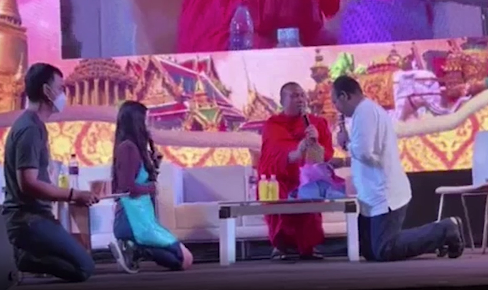 ด้านทิดไพรวัลย์โชว์จับมือน้องโอลีฟอวดพระมหาสมปอง ในลักษณะแซวว่าลาสิกขาแล้วจะทำอะไรก็ได้ พระมหาสมปองก็ได้ให้ศีลให้พรน้องโอลีฟและถ่ายภาพร่วมกัน.-สำนักข่าวไทย