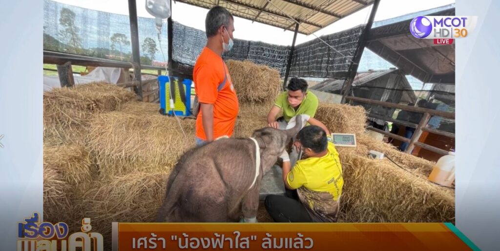ทั้งนี้ คุณหมอและเจ้าหน้าที่พยายามประคับประคองกันตลอด 1 เดือนที่ผ่านมา ประกอบกับช่วง 2 สัปดาห์แรก พอมีนมจากแม่ช้าง “พังใบเตย” และ “พังคริสต์มาส” ที่รีดมาป้อน ช่วยเสริมภูมิต้านทานของพังฟ้าใสได้ แต่ 2 สัปดาห์หลังเริ่มรีดนมจากแม่ช้างไม่ออก เพราะแม่ช้างตกลูกมาประมาณ 5 เดือน ทำให้มีนมเพียงพอแค่ลูกช้างของตัวเอง “พังฟ้าใส” จึงได้รับแต่นมผงสำเร็จรูปเป็นหลัก
