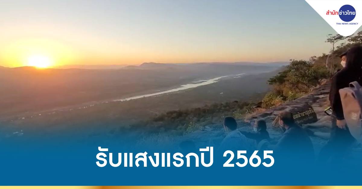 อุบลราชธานี 1 ม.ค.-นักท่องเที่ยวสุดประทับใจ ชมแสงแรกของปี 2565 ที่ผาชะนะได จ.อุบลราชธานี เสริมพลังและเป็นสิริมงคลต่อชีวิตรับปีใหม่ ท่ามกลางอากาศหนาว ลมพัดแรง