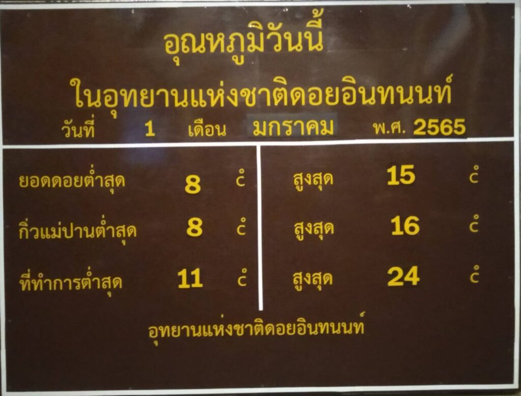 เช้าวันนี้นักท่องเที่ยวจำนวนมากเดินทางมาสัมผัสลมหนาว และชมทะเลหมอกครั้งแรกของปีบนดอยอินทนนท์ ท่ามกลางความหนาวเย็นอุณหภูมิต่ำสุดเช้านี้อยู่ที่ 8 องศาเซลเซียส ซึ่งก็ไม่ผิดหวัง เพราะเช้านี้มีทะเลหมอกผืนใหญ่ ปกคลุมยอดดอย กว้างสุดสายตาสวยงาม มาเป็นของขวัญต้อนรับวันปีใหม่ ก้าวเข้าสู่ปี 2565 ซึ่งเท่ากับความสูงของจุดสูงสุดของยอดดอยอินทนนท์ ซึ่งสูงสุดในประเทศด้วยความสูง 2,565 เมตรจากระดับน้ำทะเลด้วย หลังจากเมื่อวานนี้มีนักท่องเที่ยวที่ขึ้นไปท่องเที่ยวบนดอยอินทนนท์ในวันสิ้นปีเกือบ 10,000 คน.-สำนักข่าวไทย