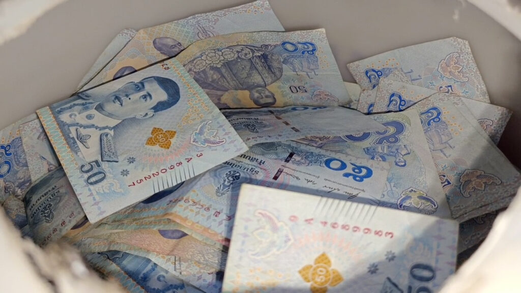 ราชบุรี 3 ม.ค.- แม่ค้าสาวชาวราชบุรี หยอดเงินใส่ถังทำเป็นลืม ครบ 1 ปี ได้เงินกว่า 1.8 แสนบาท เปิดใจเอาไปใช้หนี้และเป็นทุนการศึกษาให้ลูก