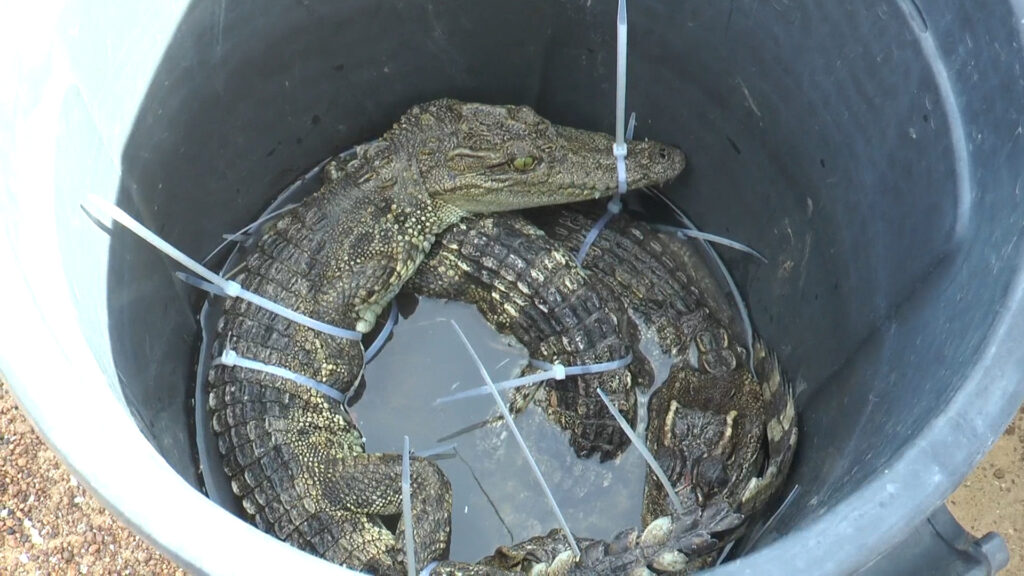 ปราจีนบุรี 3 ม.ค.- อบต.กบินทร์ ส่งเจ้าหน้าที่เข้าจับจระเข้ในบ่อ หลังมีชาวบ้านพบลอยตัวขอบบ่อหลายตัว ขนาดความยาวตั้งแต่ 50 ซม.- 1 เมตร หวั่นได้รับอันตราย