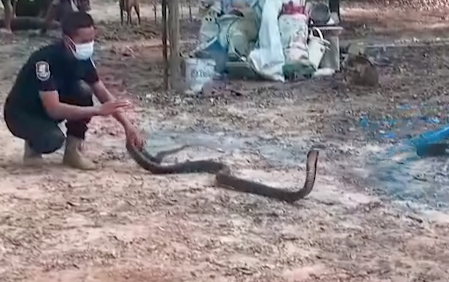 จากการสอบถามนายเชาวลิต ช่างก่อสร้าง บอกว่าตนกำลังจะเข้าไปขนย้ายกระสอบทรายไปผสมปูนก่อสร้าง ขณะที่เอื้อมมือจะยกกระสอบ บังเอิญเหลือบไปเห็นงูจงอางก่อน จึงรีบชักมือกลับและรีบโทรแจ้งเจ้าหน้าที่ให้มาช่วยจับงู ขณะที่สิบเอกณัฐพล เผยว่าที่พบงูจงอางเลื้อยเข้ามาซ่อนตัวในบ้าน หลักๆ เกิดจากหนีอากาศหนาวเข้ามาหาที่อุ่นซ่อนตัว หรือเพื่อหาคู่ หรือตามล่างูชนิดอื่นที่เป็นอาหาร โดยภาพการจับงูด้วยมือเปล่าตามสื่อต่างๆ ขึ้นอยู่กับความยากง่ายในแต่ละพื้นที่ ซึ่งทีมงานทุกคนจะใช้ความรู้ ความสามารถ ทักษะและประสบการณ์จากหน้างานต่างๆ มาแก้ไขและเลือกวิธีจับที่เหมาะสม ตลอดจนมีความปลอดภัยที่สุด ไม่แนะนำให้ลอกเลียนแบบโดยเด็ดขาด .-สำนักข่าวไทย