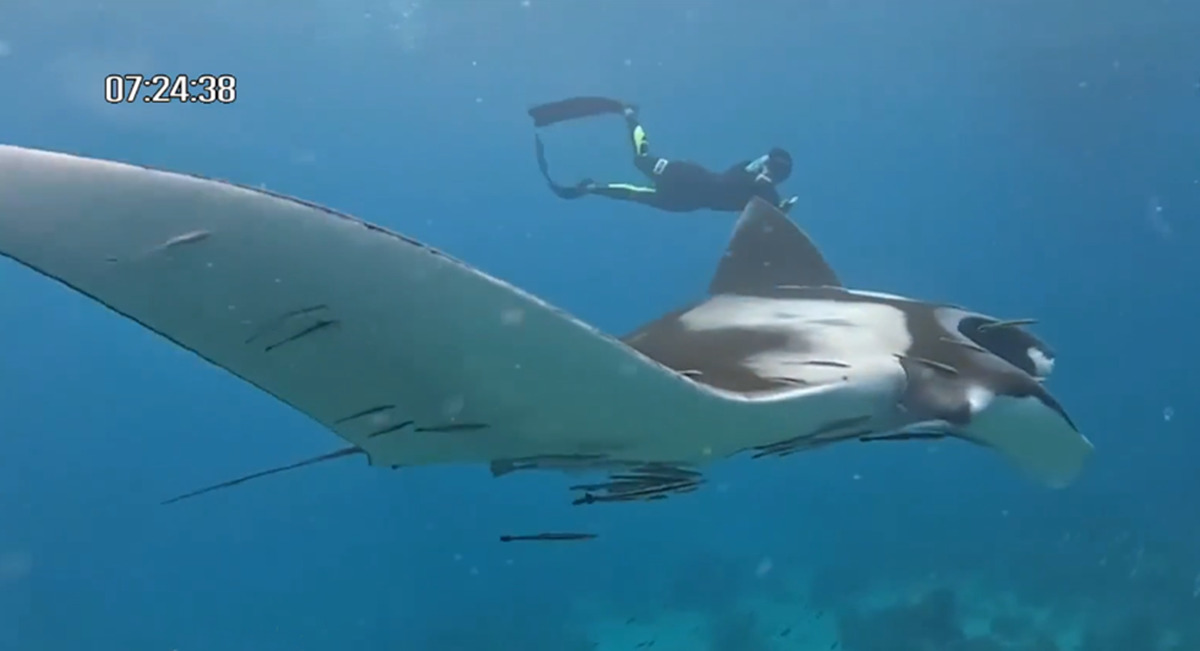 ตรัง 5 ม.ค. – นักท่องเที่ยวตะลึง พบ “กระเบนแมนตา” หรือ “กระเบนราหู” ปลากระเบนที่ใหญ่ที่สุดในโลก โผล่อวดโฉมที่เกาะรอก จ.ตรัง