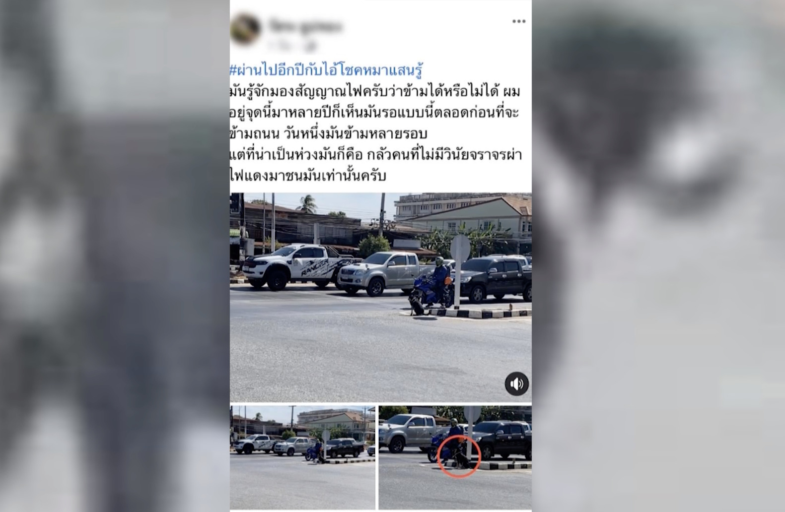 ผู้ใช้เฟสบุ๊กรายหนึ่งโพสต์คลิปวิดีโอสุนัขสีดำชื่อ “เจ้าโชค” ที่กำลังนั่งรอสัญญาณไฟเขียว เพื่อเดินข้ามถนนไปอีกฝั่ง ที่บริเวณ 4 แยกไฟแดง ที่ อ.บึงสามพัน จ.เพชรบูรณ์ พร้อมระบุข้อความว่า “#ผ่านไปอีกปี กับไอ้โชคหมาแสนรู้ มันรู้จักมองสัญญาณไฟครับ ว่าข้ามได้หรือไม่ได้ ผมอยู่จุดนี้มาหลายปี ก็เห็นมันรอแบบนี้ตลอด ก่อนที่จะข้ามถนน วันหนึ่งมันข้ามหลายรอบ แต่ที่น่าเป็นห่วงมันก็คือ กลัวคนที่ไม่มีวินัยจราจร ผ่าไฟแดงมาชนมันเท่านั้นครับ”